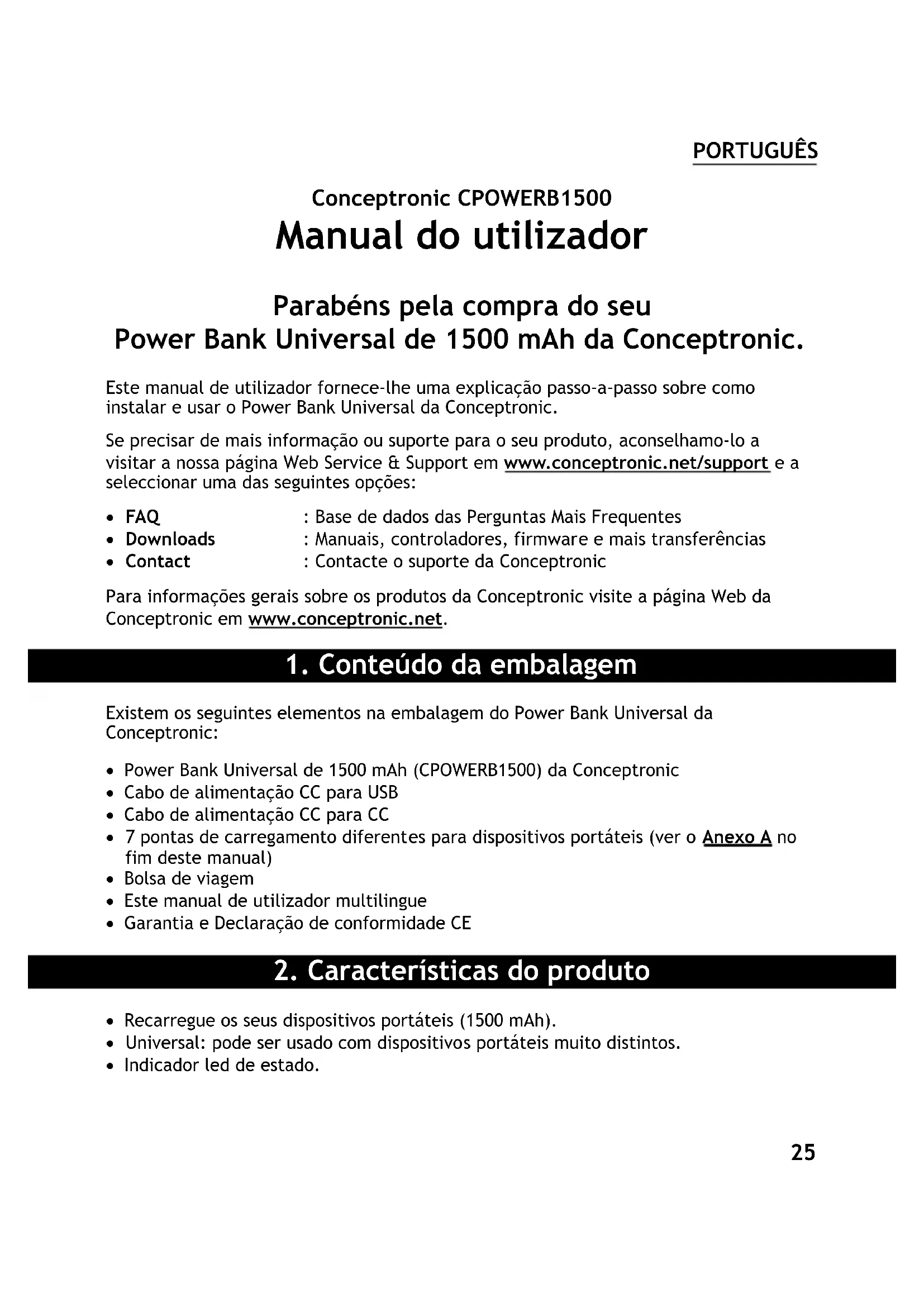 CPOWERB1500 - Bateria portátil CONCEPTRONIC - Manual de utilização gratuito