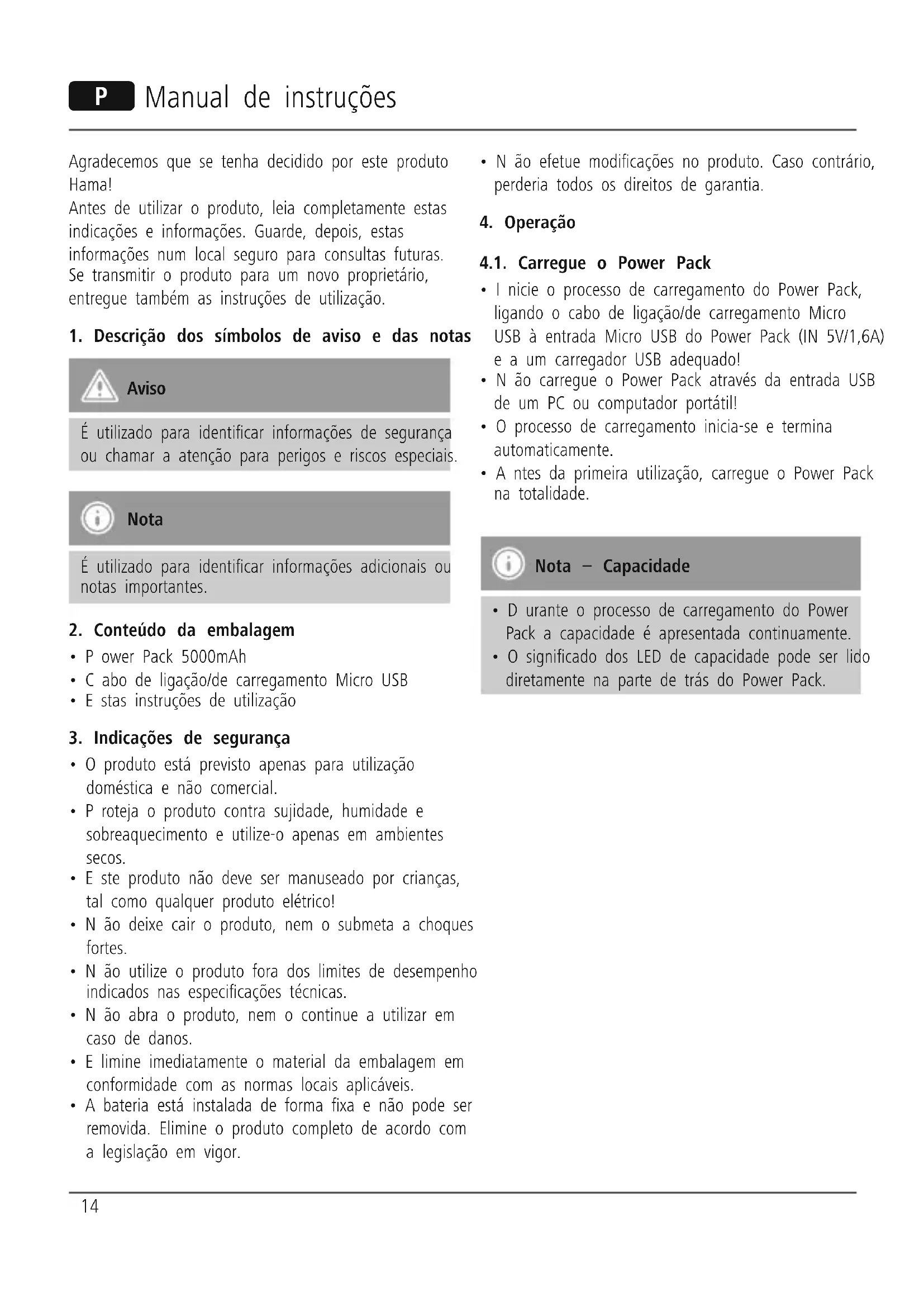 Encontre gratuitamente o manual do aparelho Power Pack 00128076 HAMA em formato PDF.