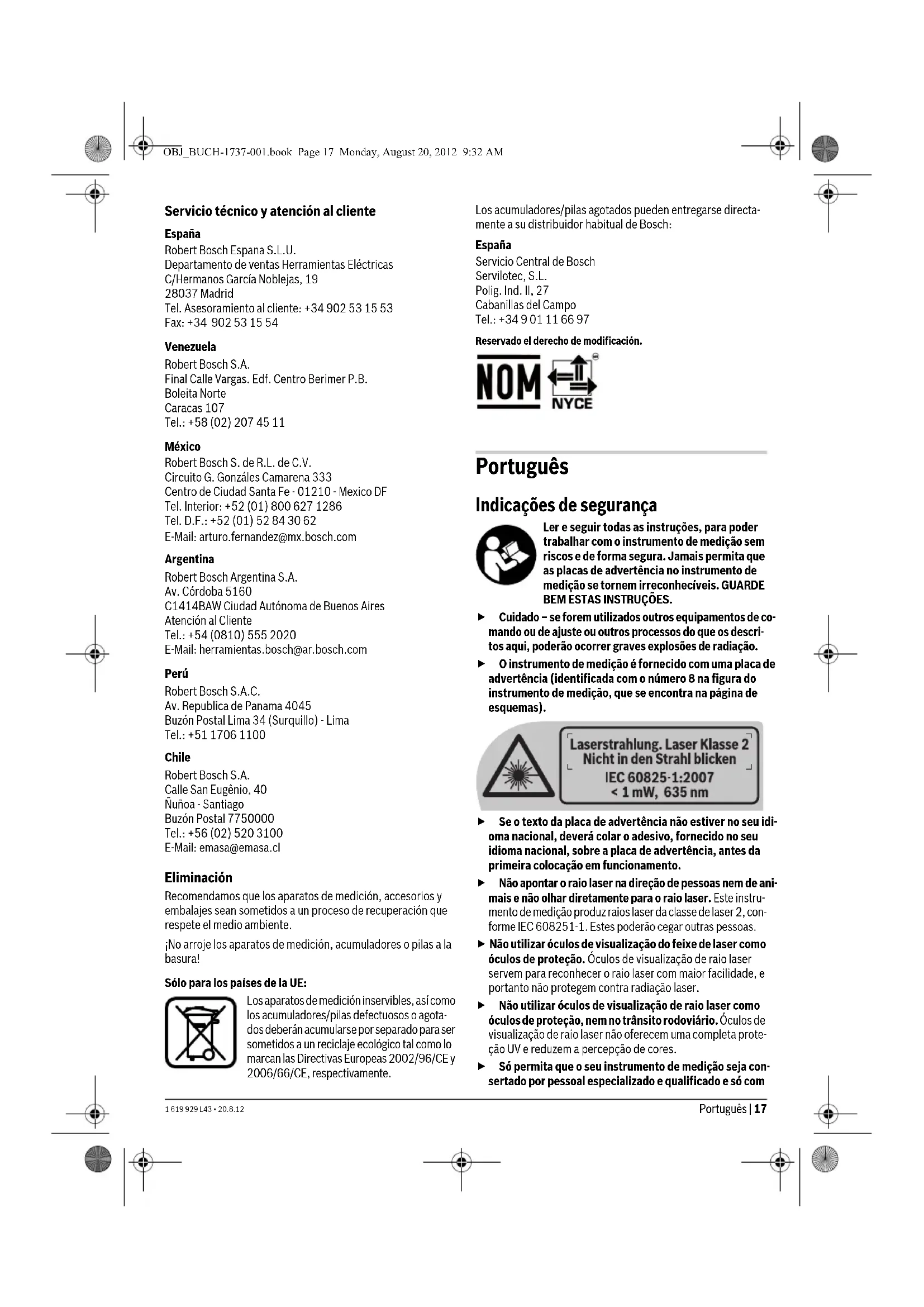 Se o instrumento de medicacao falhar apesar de cuidadosos processos de fabricacao e de teste, o reparodeer ser executado por una oficina de service autorizada para ferramentas eletricas Bosch. NãoAbrir pessoamente o instrumento de medicacao.