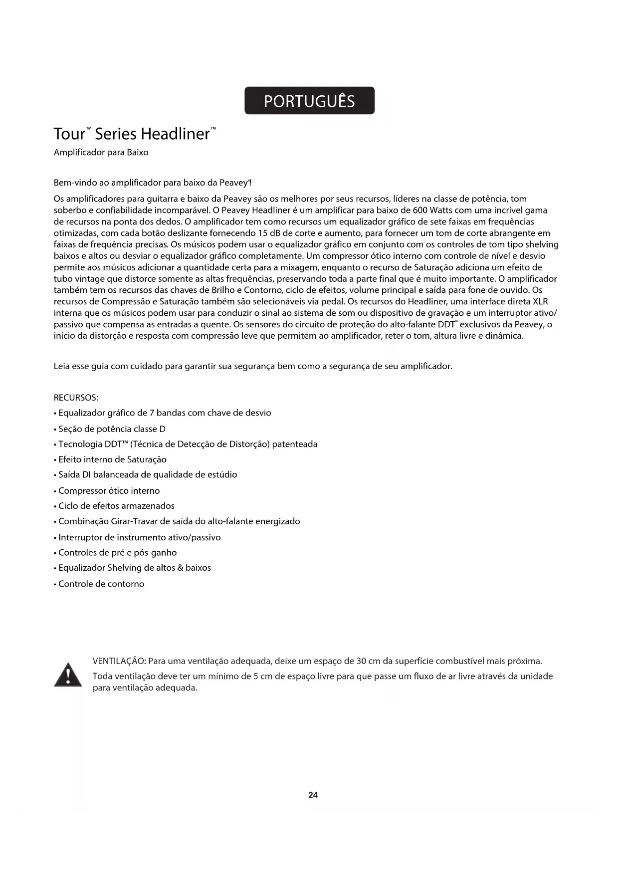 Encontre gratuitamente o manual do aparelho Headliner PEAVEY em formato PDF.