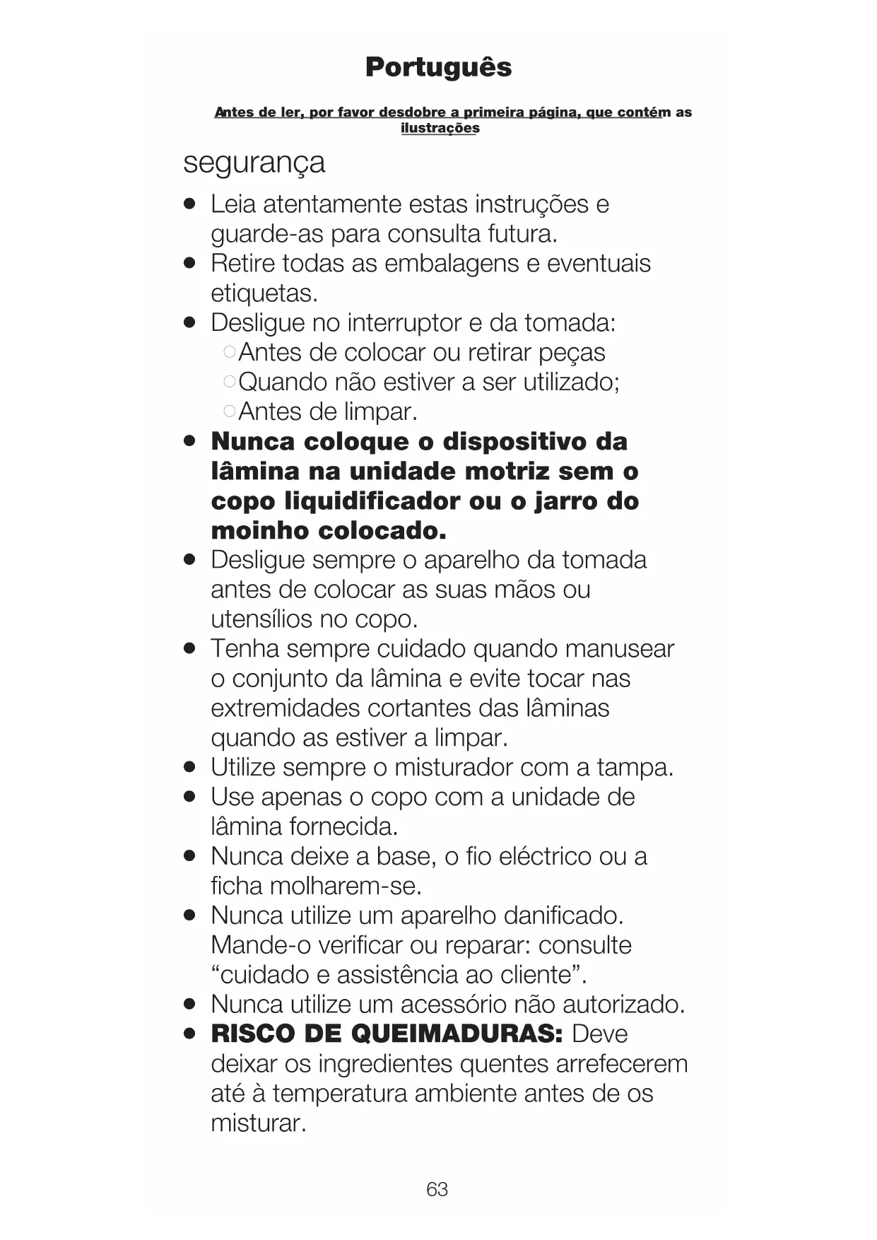 ntes de ler, por favor desdobre a primeira página, que contém as lustrações PortuguêsG Nunca deixe o aparelho sem vigilância quando estiver em funcionamento.