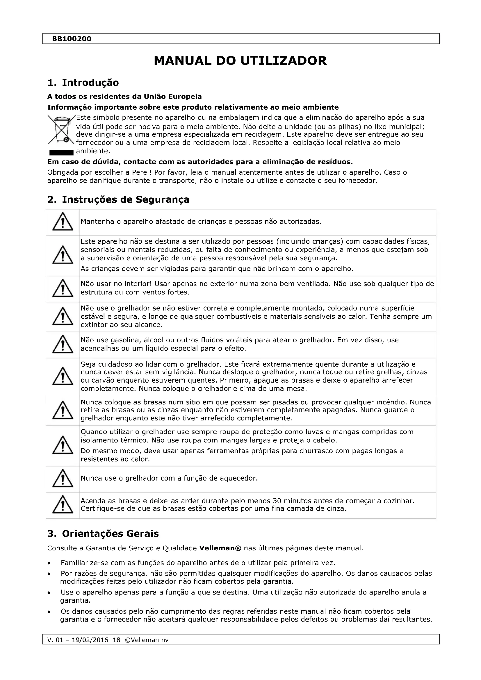 MANUAL DE UTILIZADOR BB100200 Perel