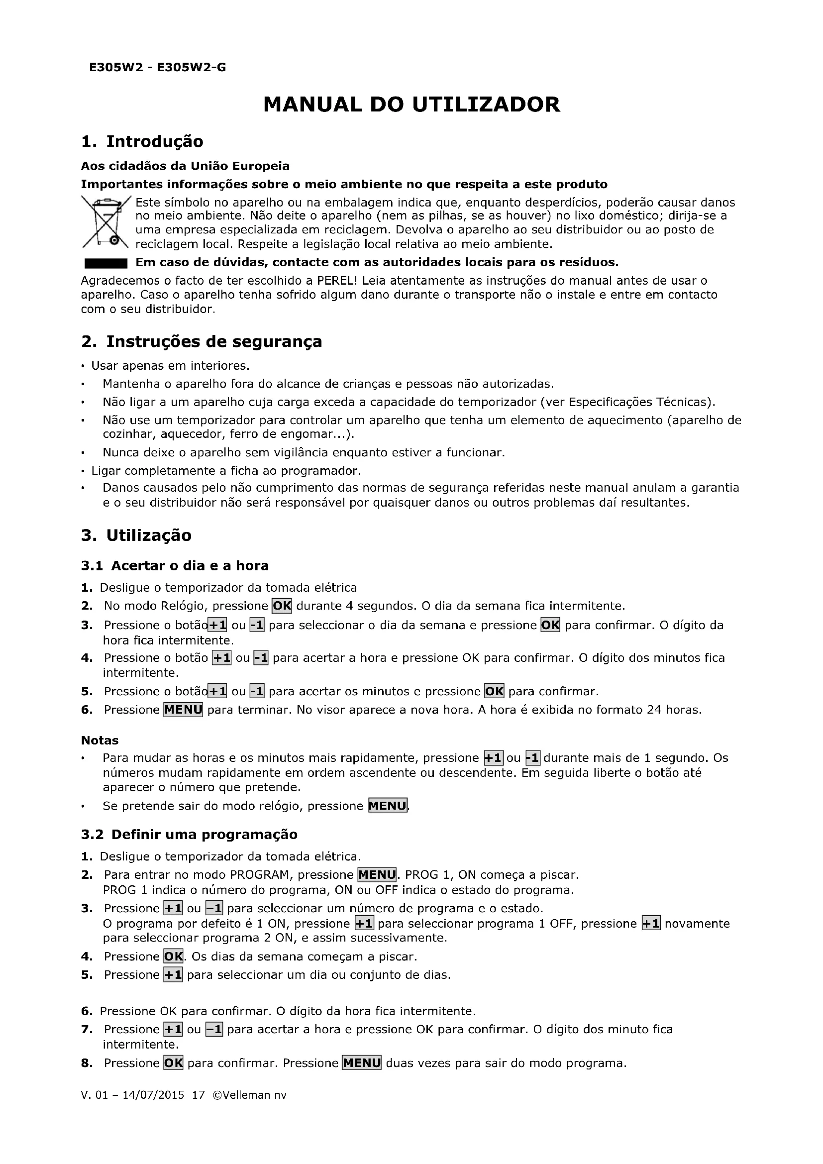 MANUAL DE UTILIZADOR E305W2G Perel