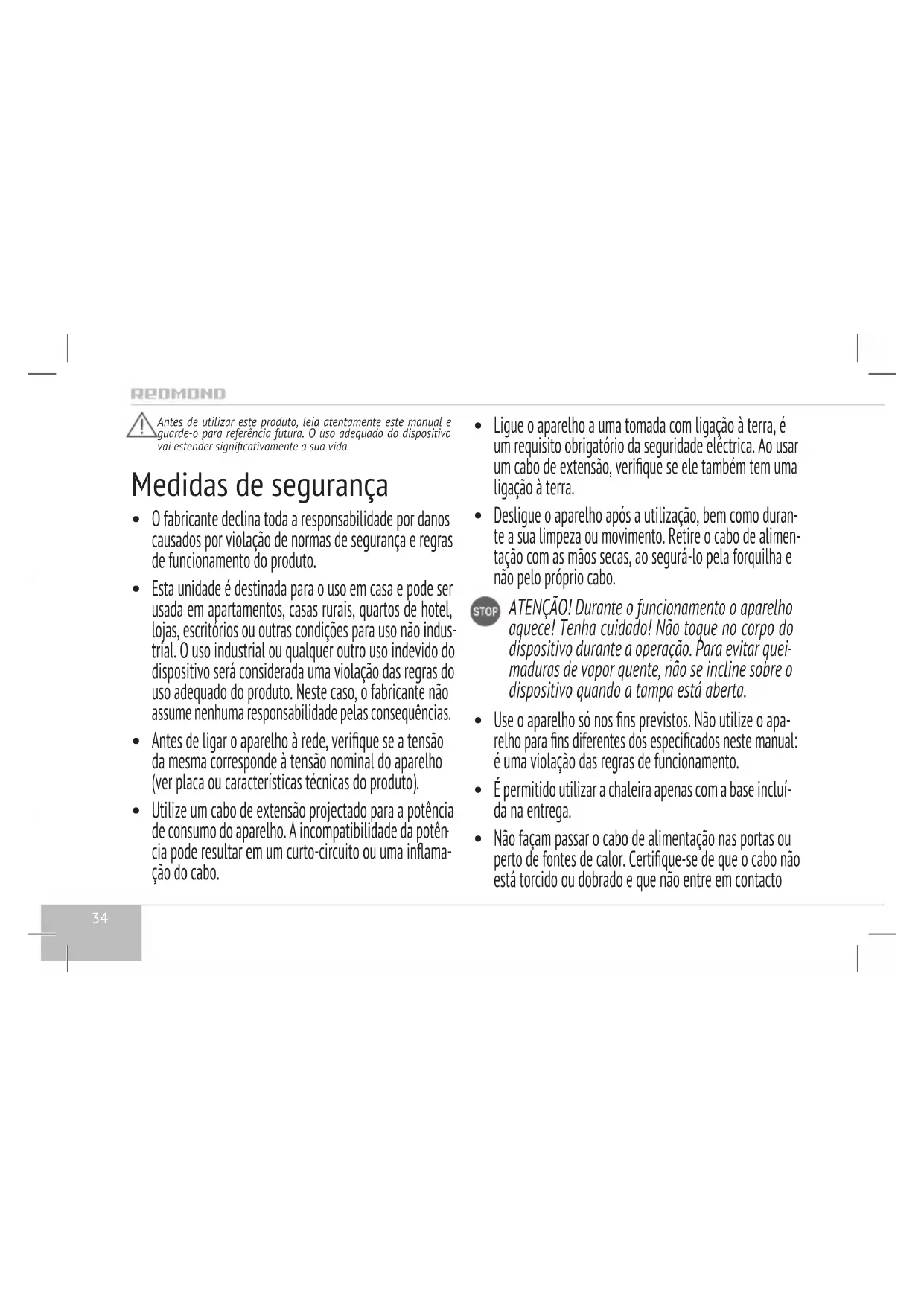 Encontre gratuitamente o manual do aparelho RKM143E Redmond em formato PDF.