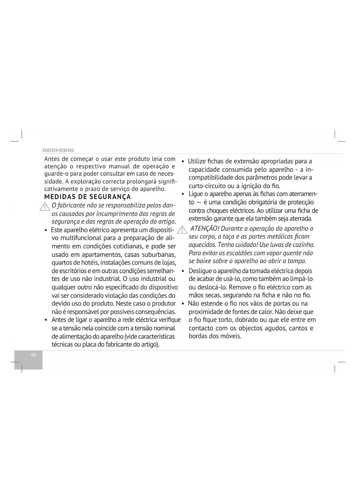 Encontre gratuitamente o manual do aparelho RMCPM4506E Redmond em formato PDF.