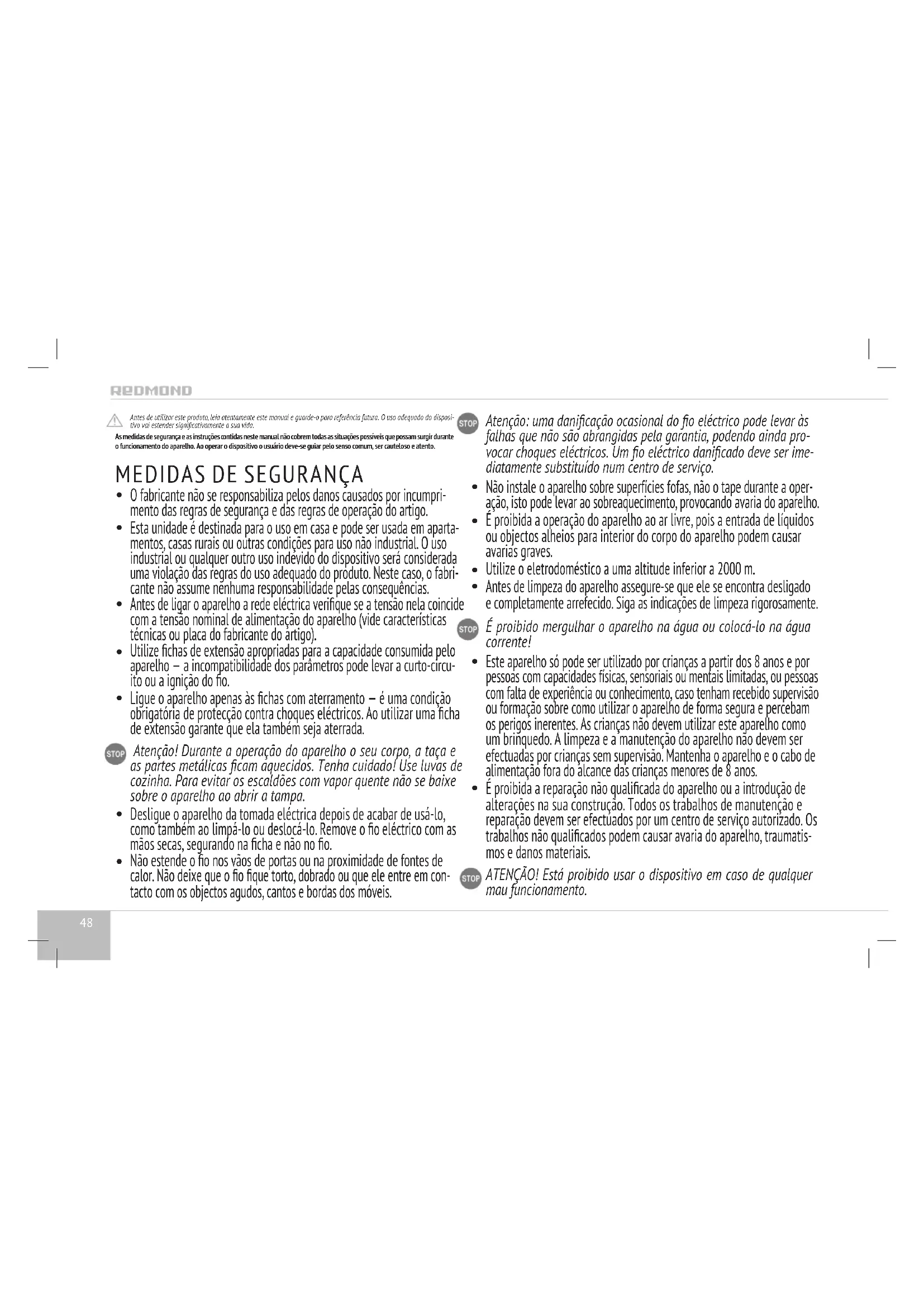 RMCM90E - Panela multifunções Redmond - Manual de utilização gratuito