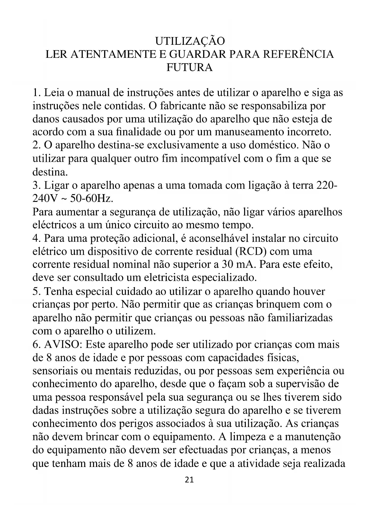 1. Leia o manual de instruções antes de utilizar o aparelho e siga as