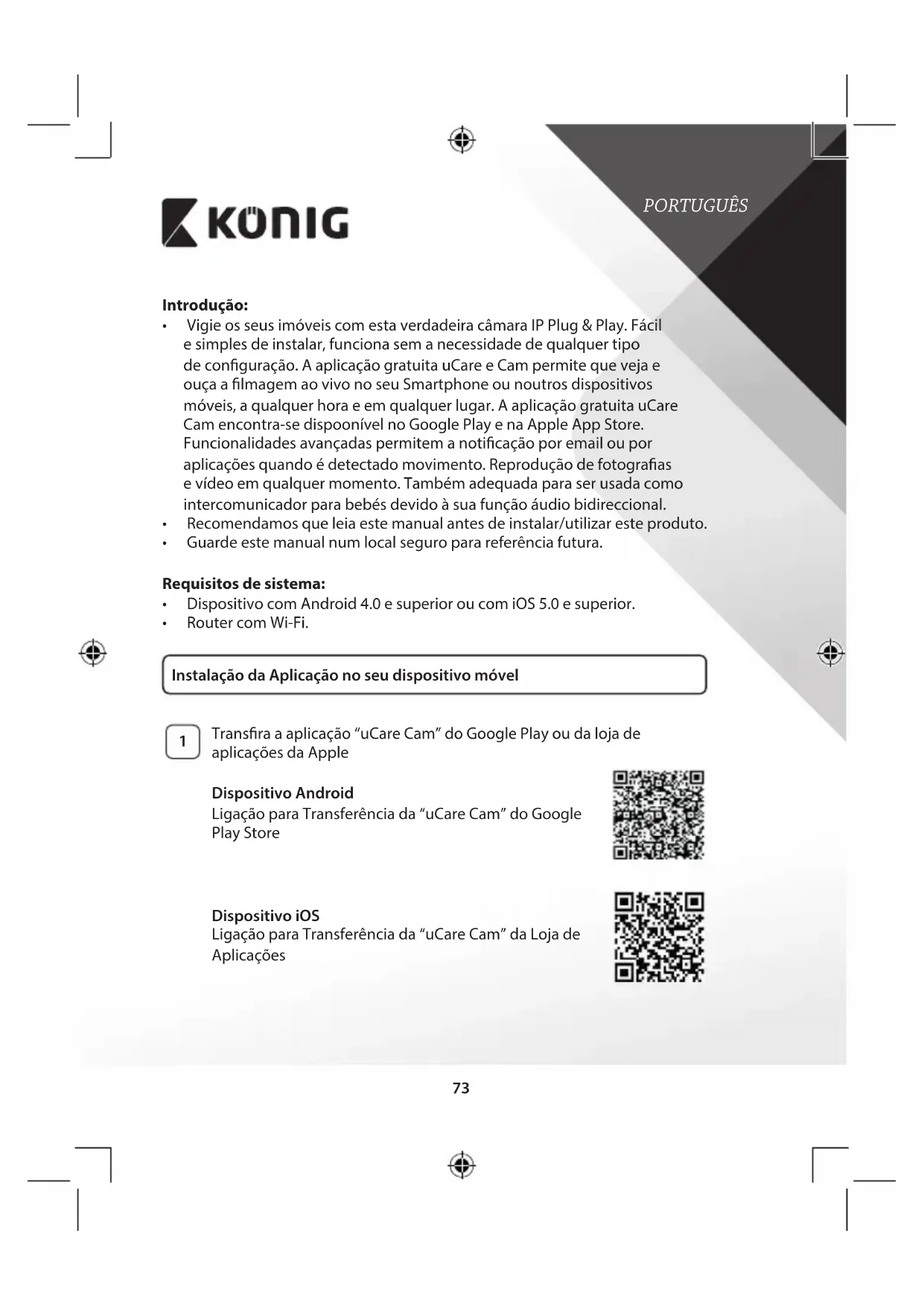 Transraaaplicação“uCareCam”doGooglePlayoudalojade aplicaçõesdaApple Dispositivo Android LigaçãoparaTransferênciada“uCareCam”doGoogle PlayStore Dispositivo iOS LigaçãoparaTransferênciada“uCareCam”daLojade AplicaçõesPORTUGUÊS