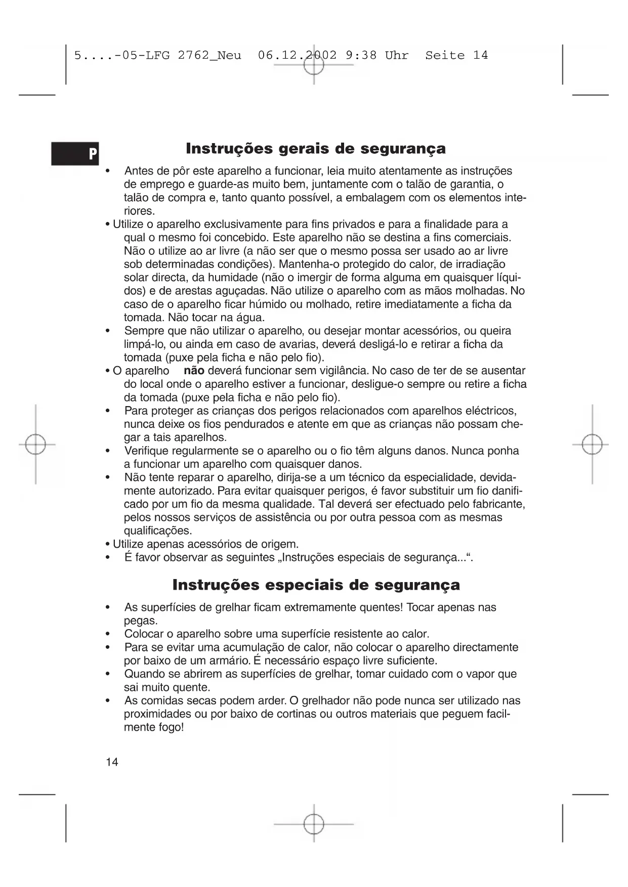 5....-05-LFG 2762_Neu 06.12.2002 9:38 Uhr Seite 14Primeira utilização do aparelho