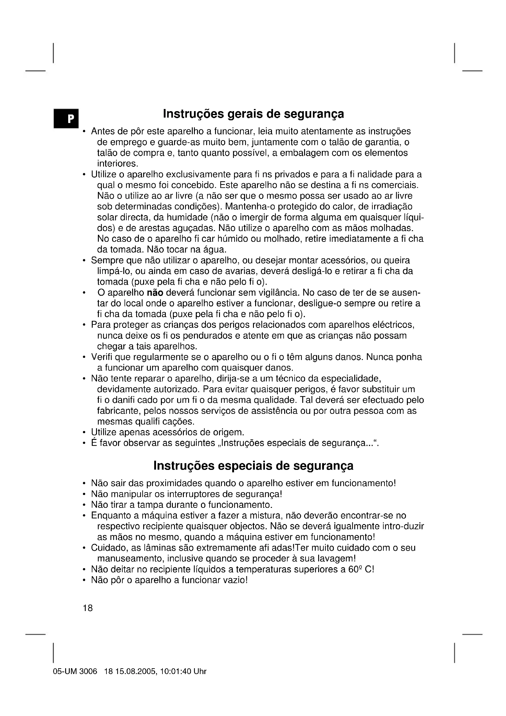 - Não pôr o aparelho a funcionar vazio! 05-UM 3006 18 15.08.2005, 10:01:40 UhrP