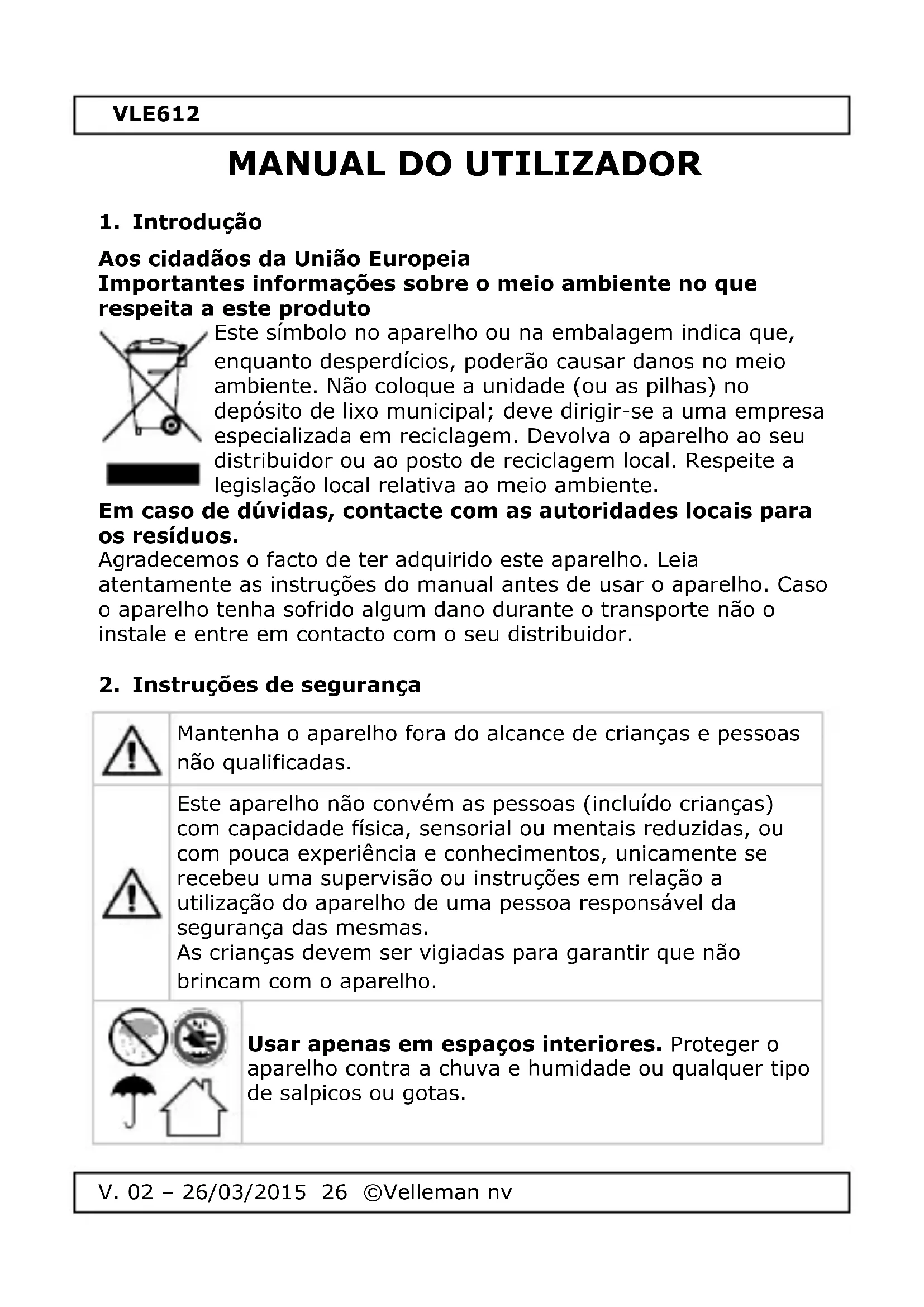 MANUAL DE UTILIZADOR VLE612 VELLEMAN