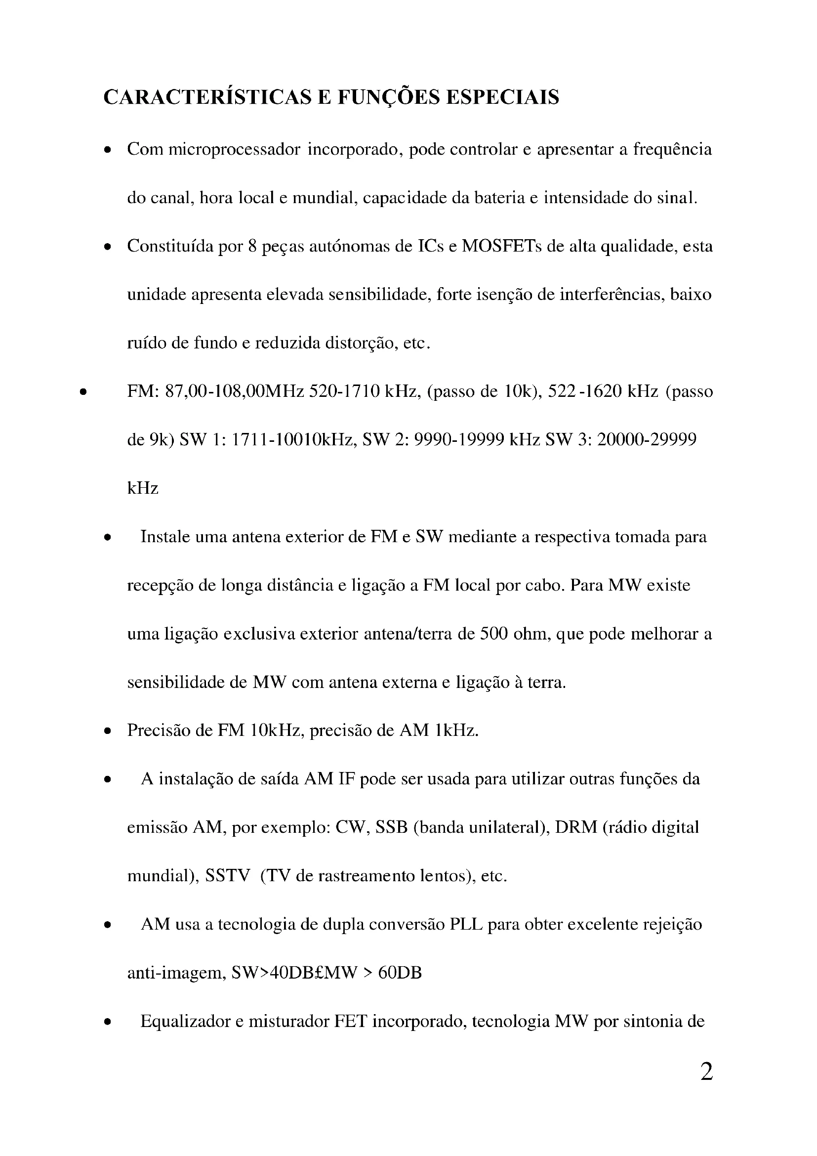 2. Aselecção da banda larga de AM permite receber melhor qualidade de som.