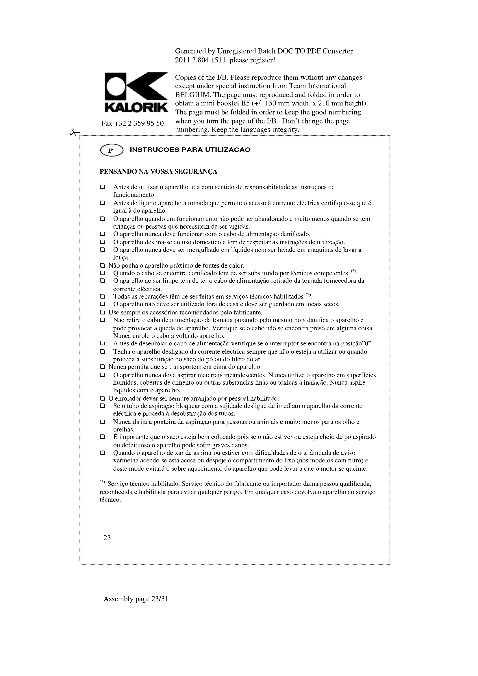 KA ASP 14 - Aspirador KALORIK - Manual de utilização gratuito
