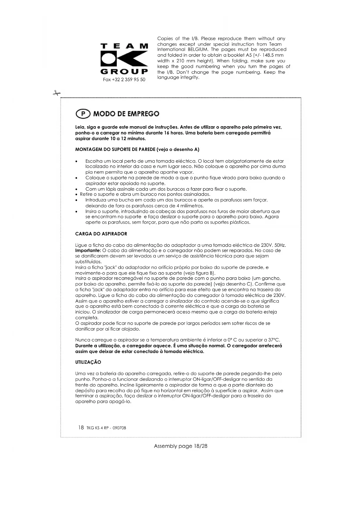 Leia, siga e guarde este manual de instruções. Antes de utilizar o aparelho pela primeira vez, ponha-o a carregar no mínimo durante 16 horas. Uma bateria bem carregada permitirá aspirar durante 10 a 12 minutos.