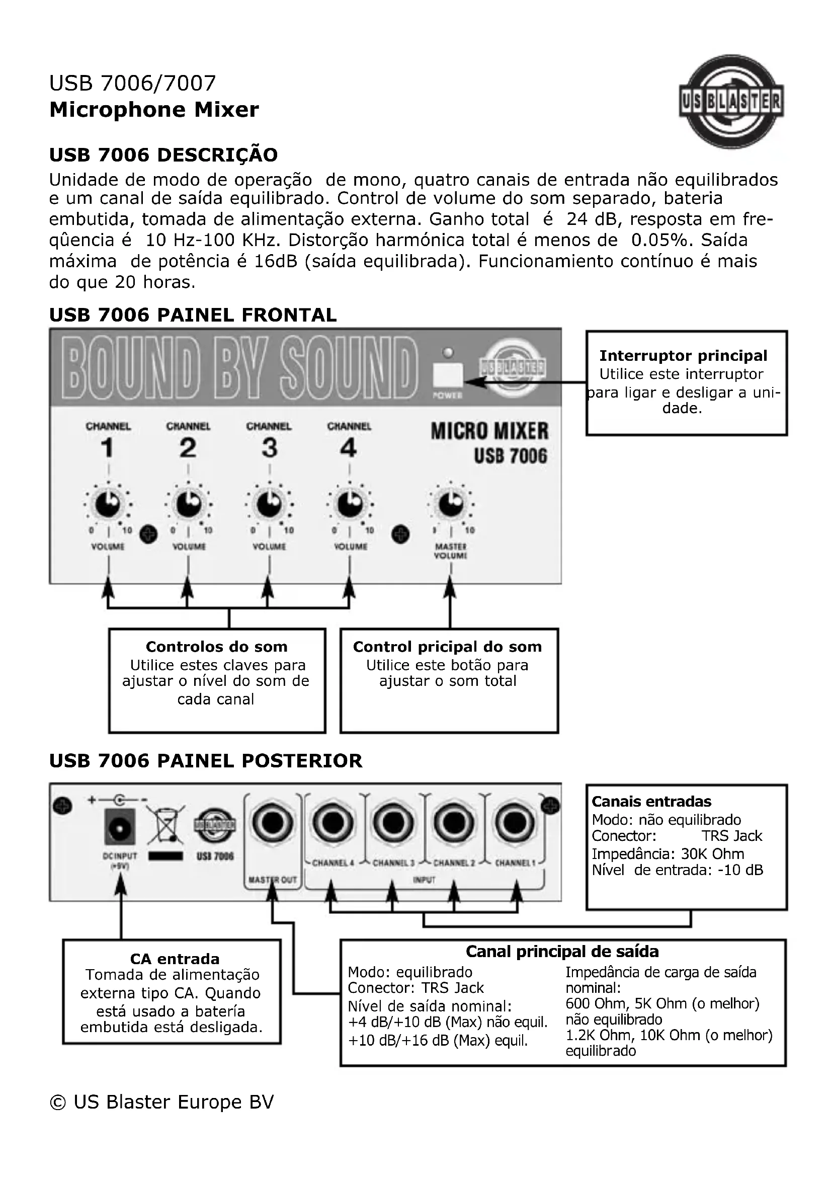 USB 7007 - Equipamento DJ US Blaster - Manual de utilização gratuito