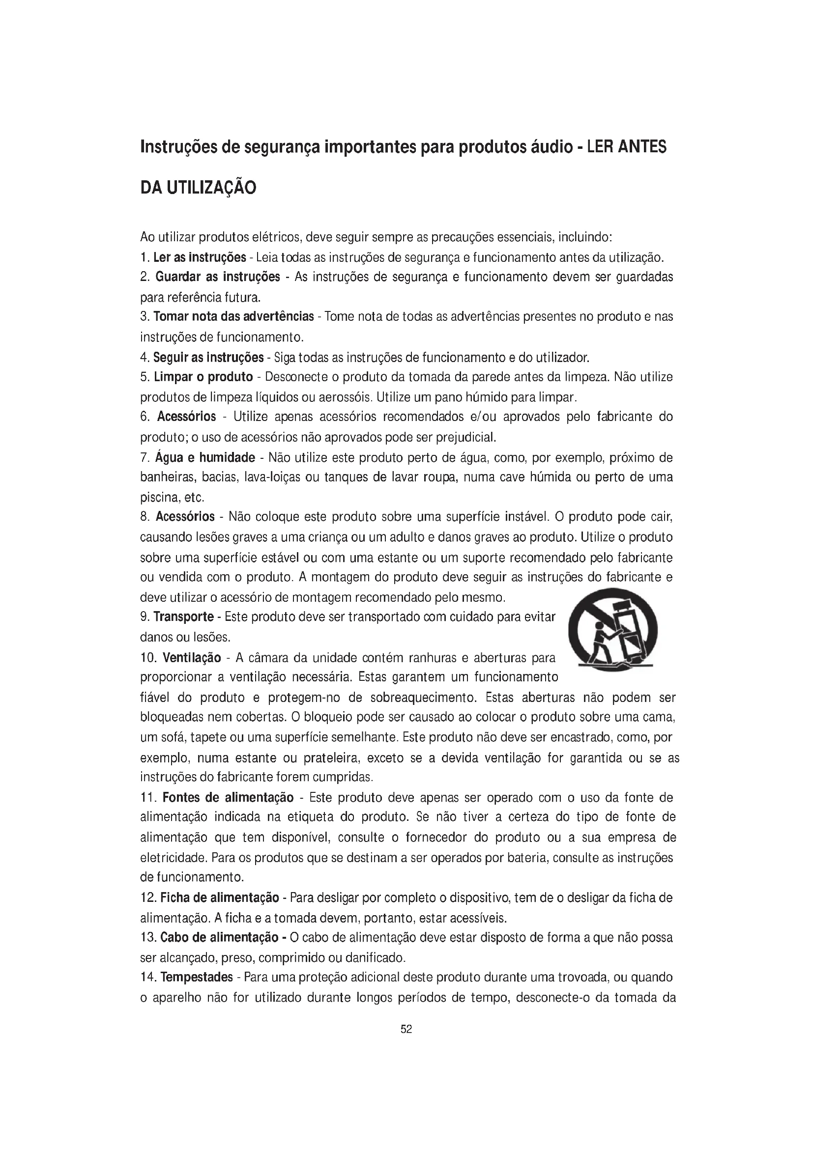 Instruções de segurarça importantes para produits录音 - LER ANTES DA UTILIZACão