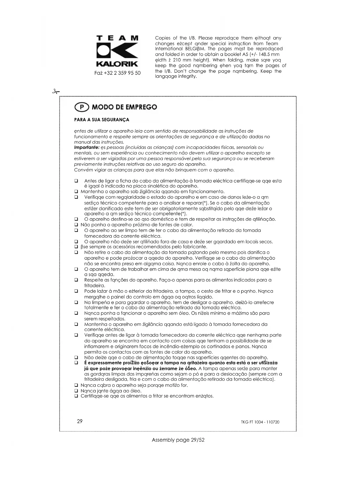TKG FT 1004 - Fritadeira TEAM - Manual de utilização gratuito