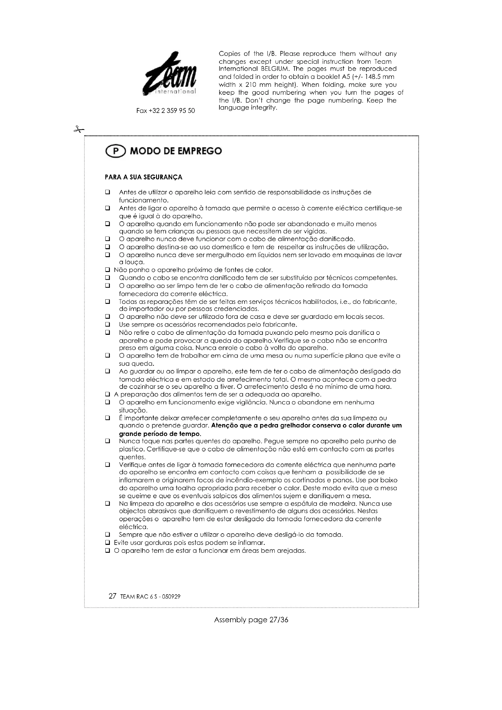 Para a preservação do ambiente e da)nossa saude, a eliminação no fim da vidautil dos aparelhos electrolycicos e electrónicos, delve-se efectuar no coprimamento das legislações em vigor ePGA participação de todos quer sejam produtores ouutilizadores. é por esta razão