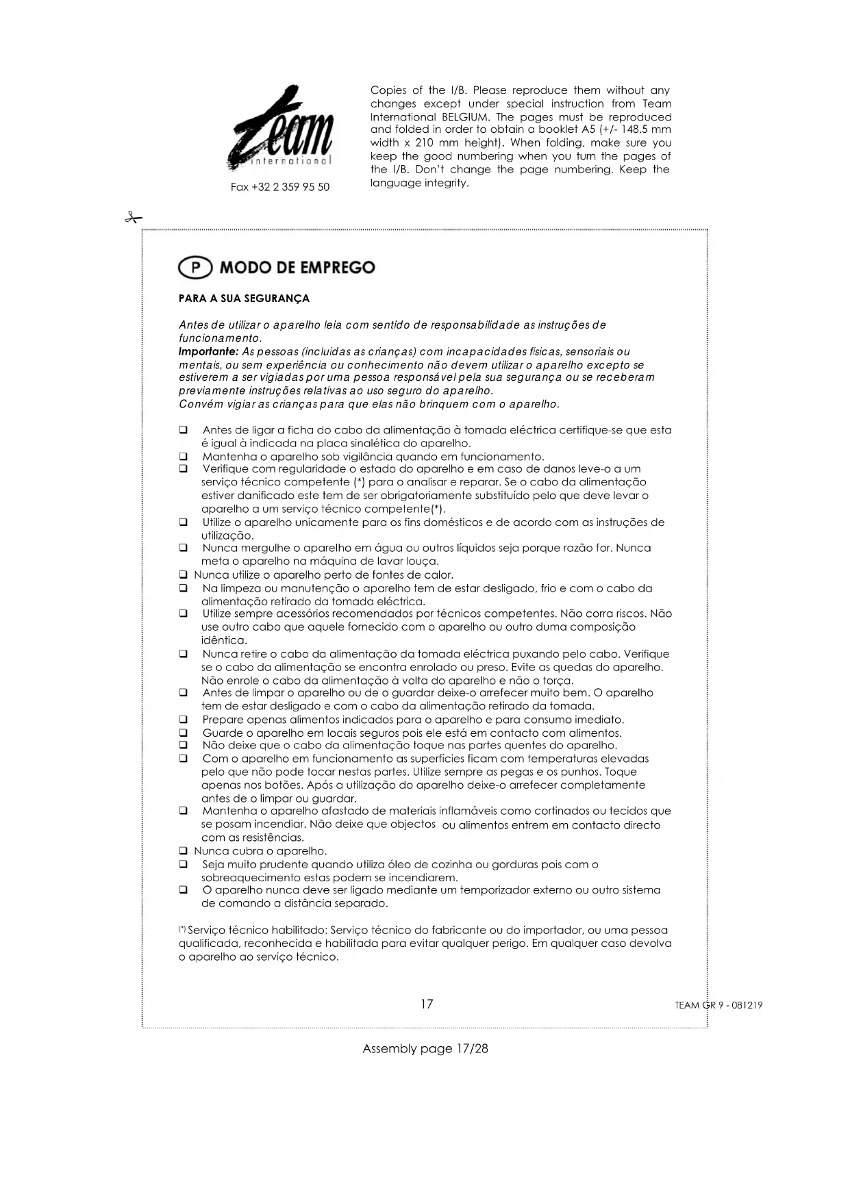 Encontre gratuitamente o manual do aparelho GR 9 TEAM em formato PDF.