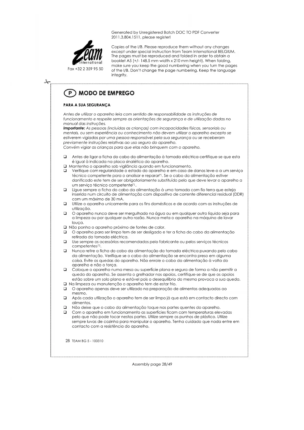Importante: As pessoas (incluidas as crianças) com incapacidades fisicas, sensoriais ou mentalais, ou sem experiência ou conheção não devem usar o aparheiro excepto se estiverem vigiadas por uma pessoa responsavelPGA sua segurarou se receberam previamente instruções relativas ao uso seguro do aparheiro.
