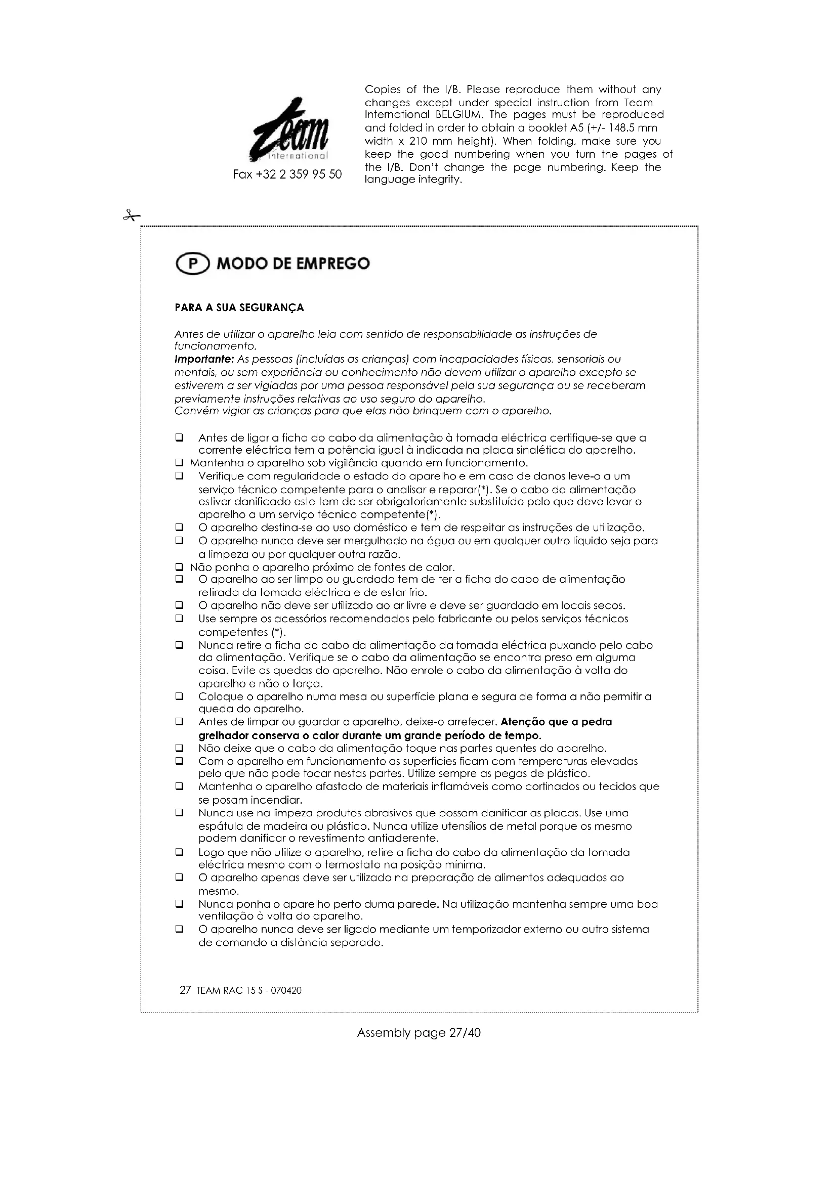 RAC 15 S - Aparelho para fondue, raclette e wok TEAM - Manual de utilização gratuito