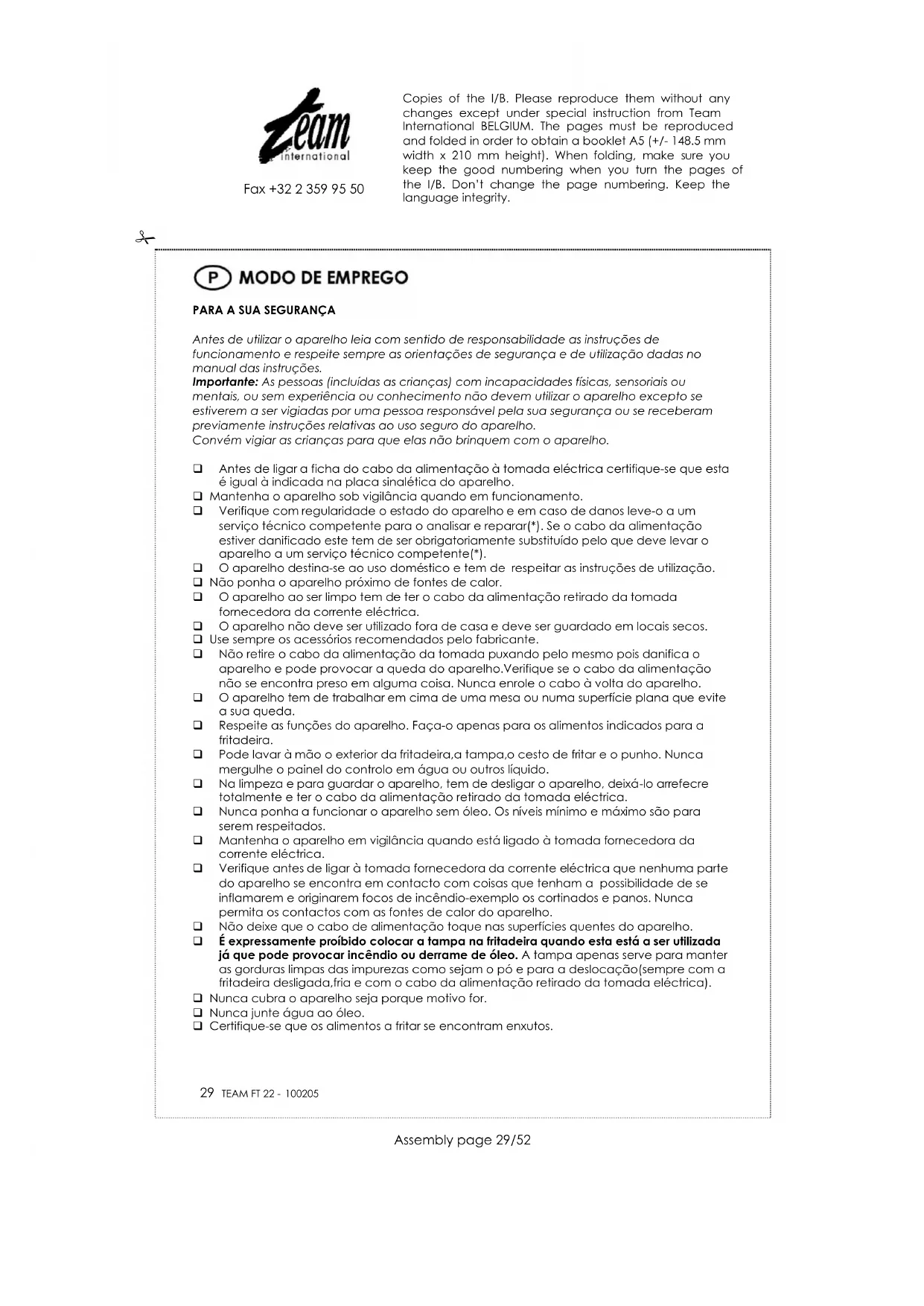 FT 22 - Fritadeira TEAM - Manual de utilização gratuito