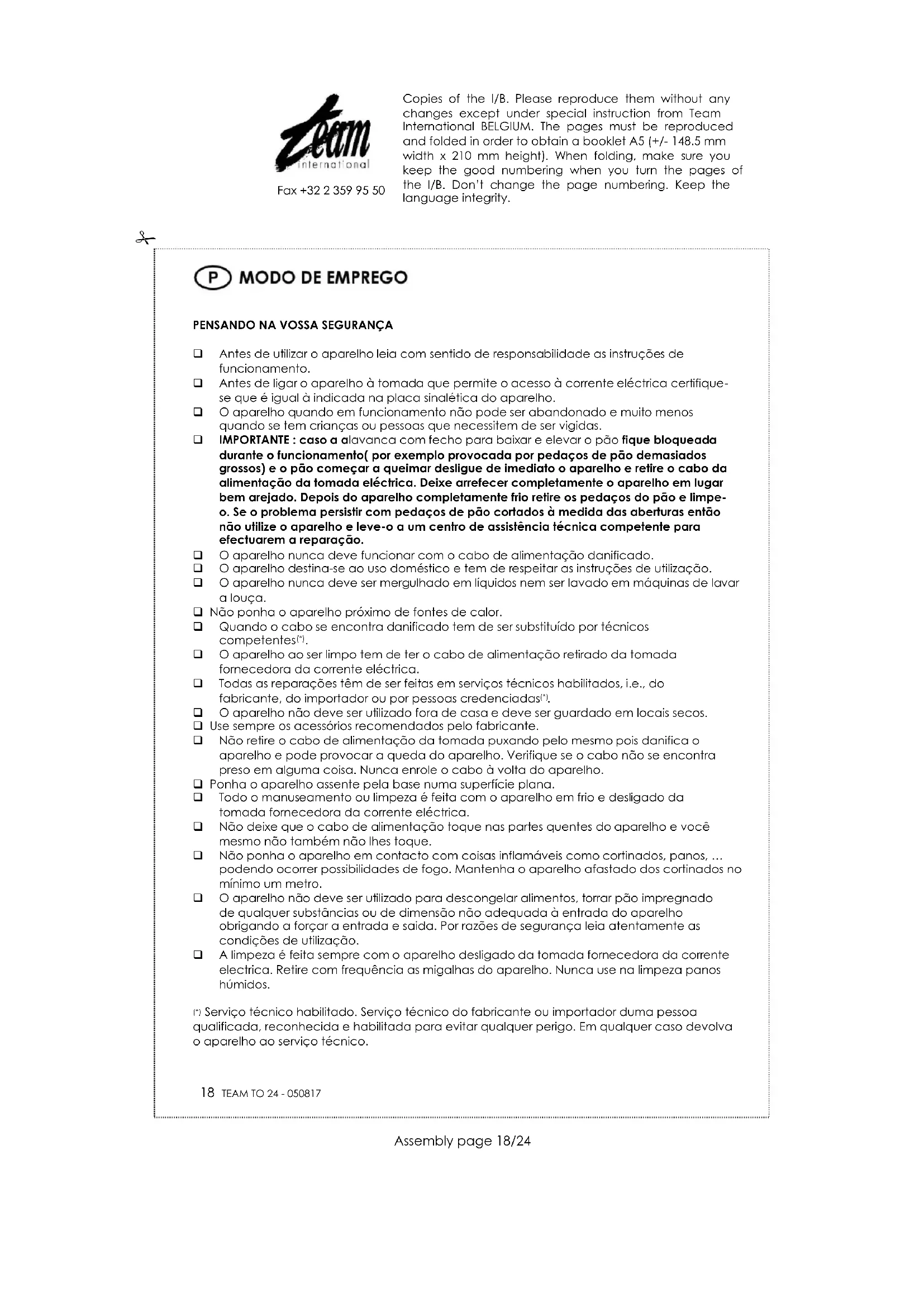TO 24 - Torradeira TEAM - Manual de utilização gratuito