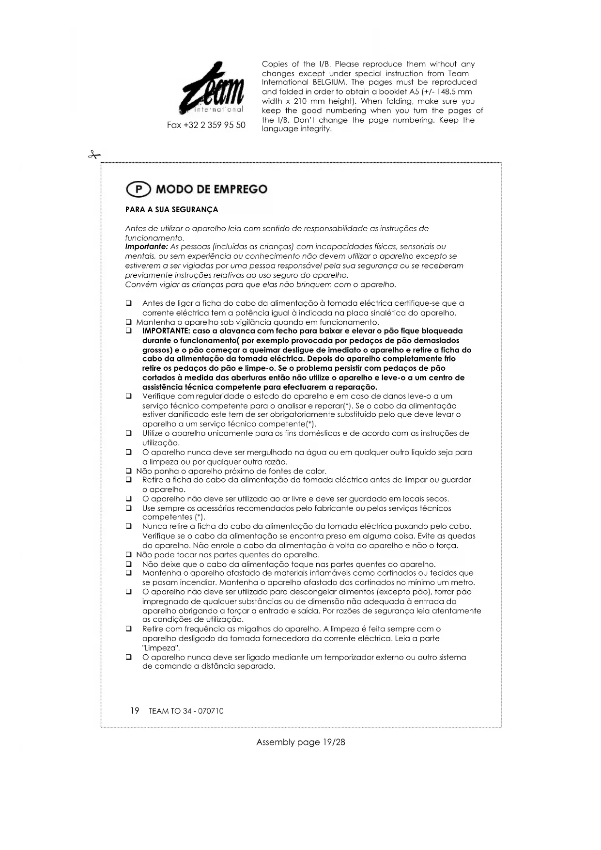 TO 34 - Torradeira TEAM - Manual de utilização gratuito