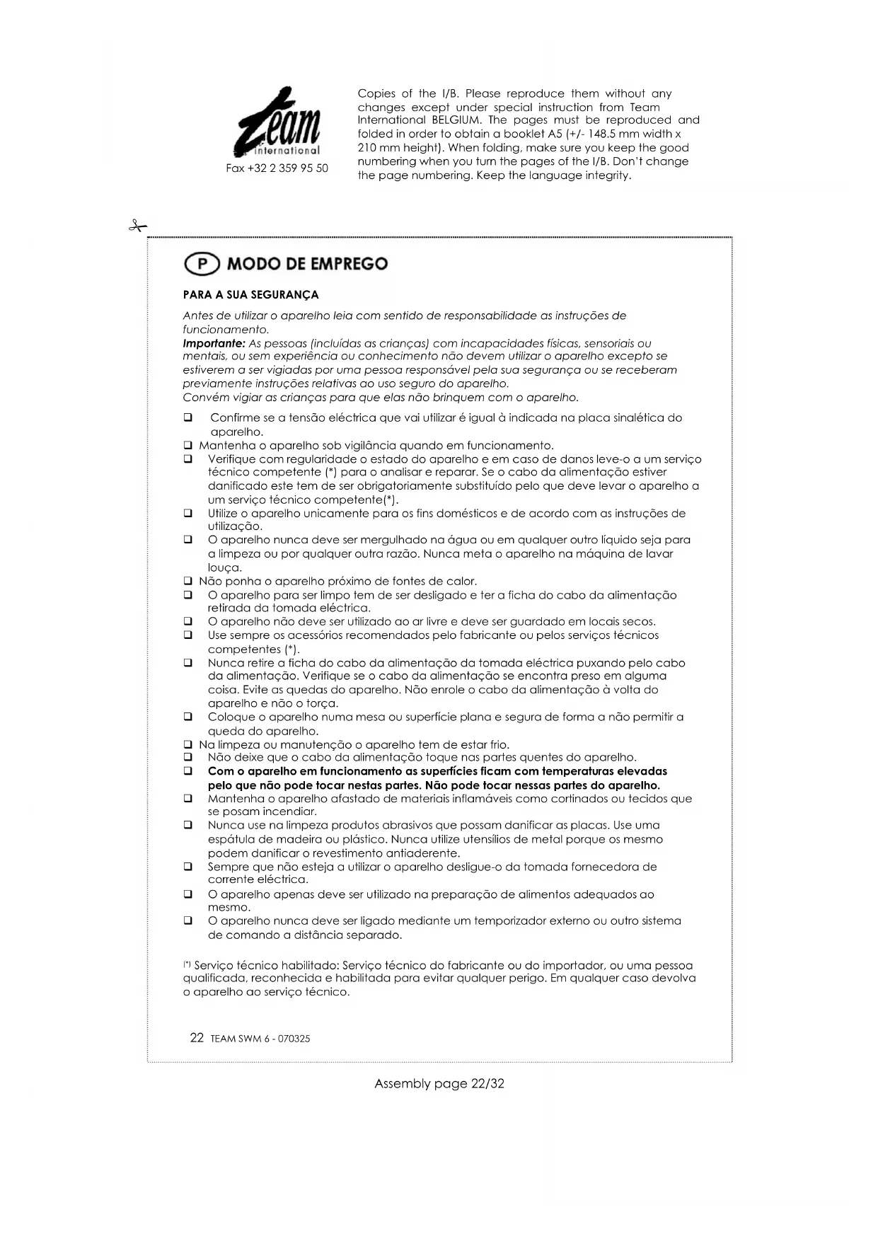 Encontre gratuitamente o manual do aparelho SWM 6 TEAM em formato PDF.