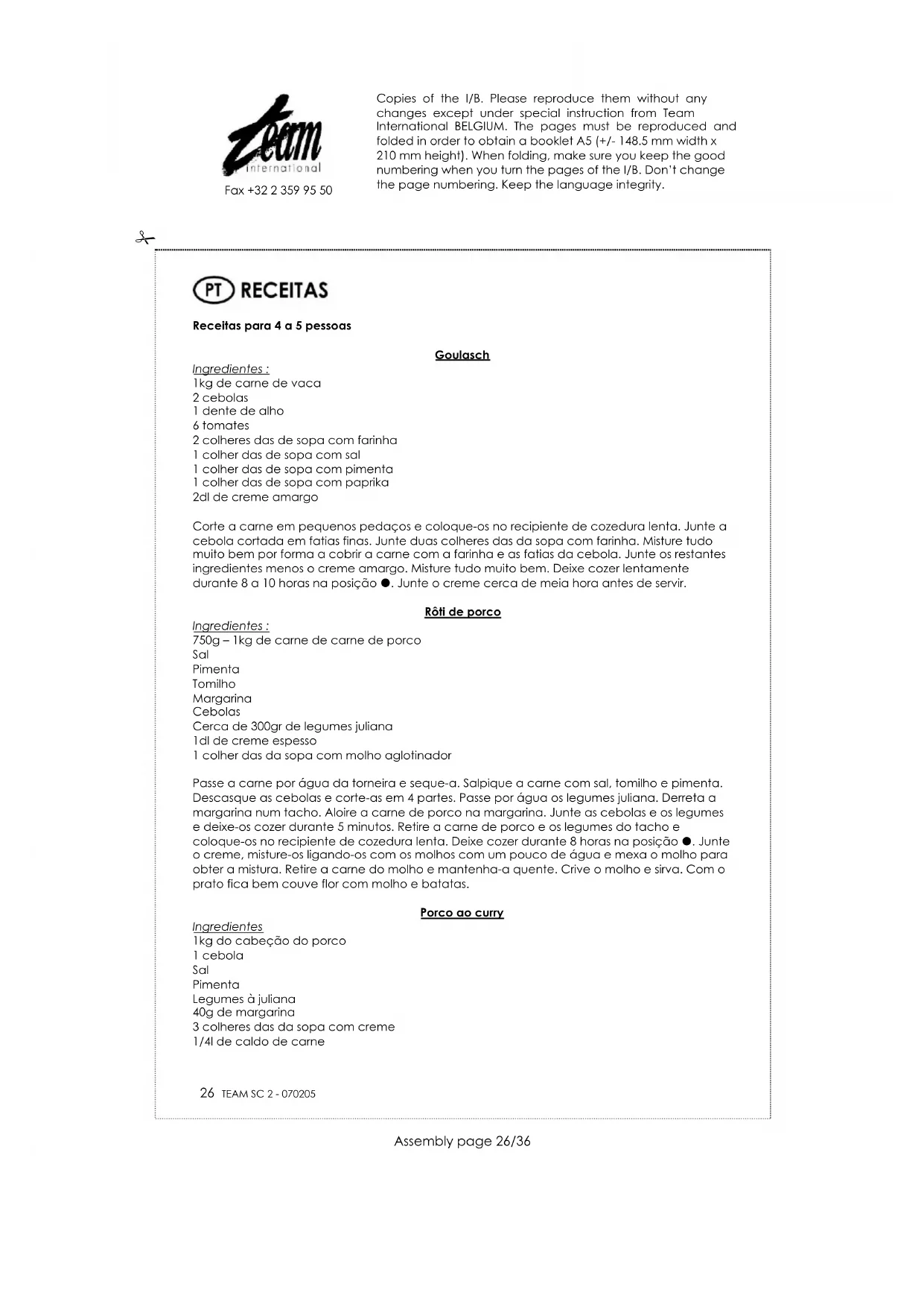 Encontre gratuitamente o manual do aparelho SC 2 TEAM em formato PDF.