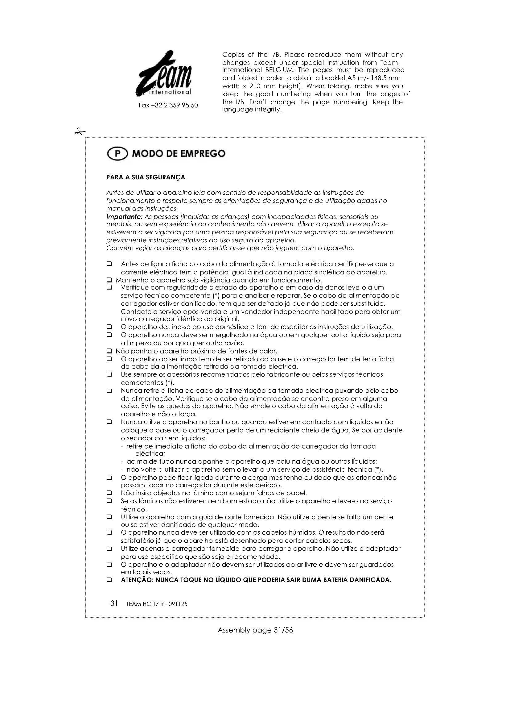 - Para que a máquina de cortar cabelo funcione nas melhores condições, este deve ser colocada sempre na unidade de recarga depois de ter sido utilizada.