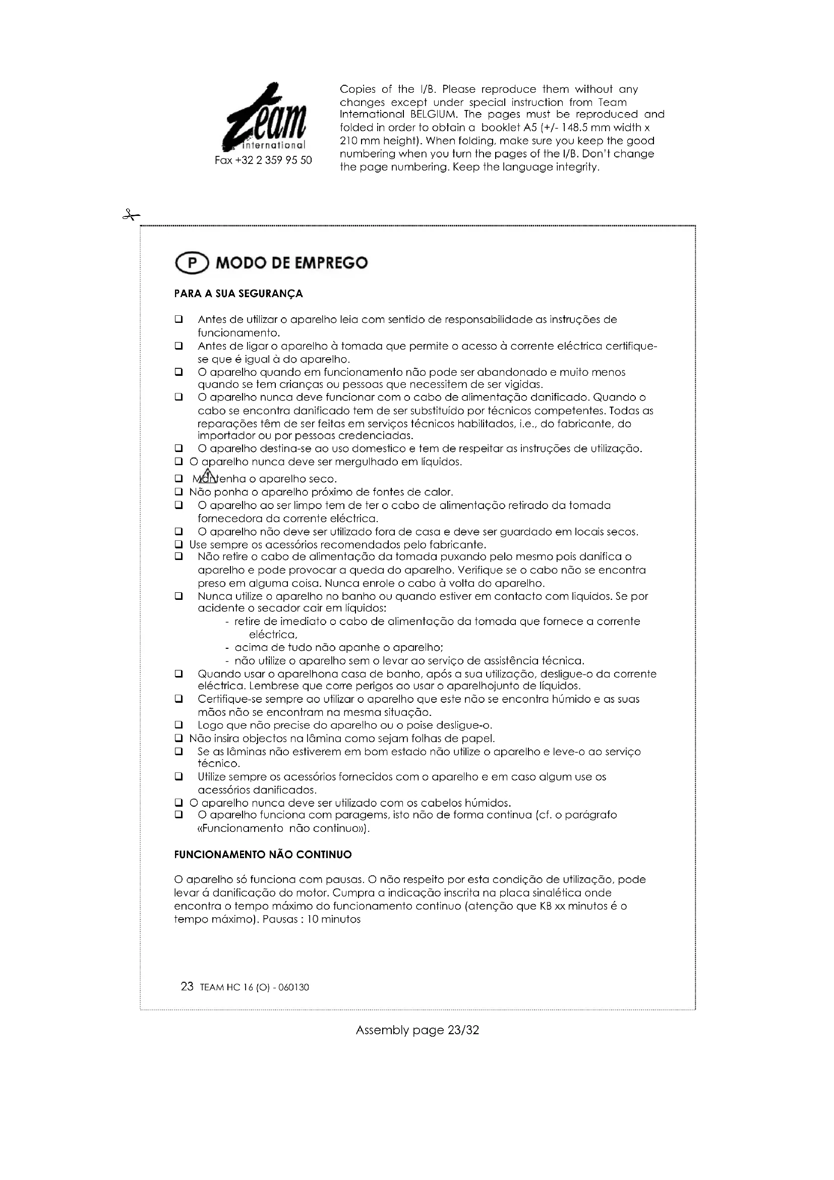 Encontre gratuitamente o manual do aparelho HC 16 TEAM em formato PDF.