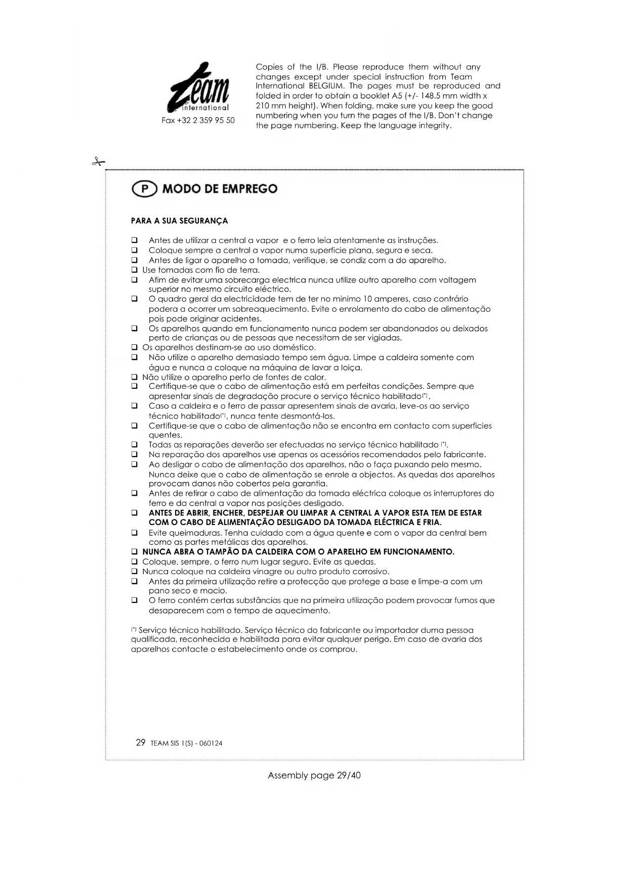 SIS 1 - Ferro de passar TEAM - Manual de utilização gratuito