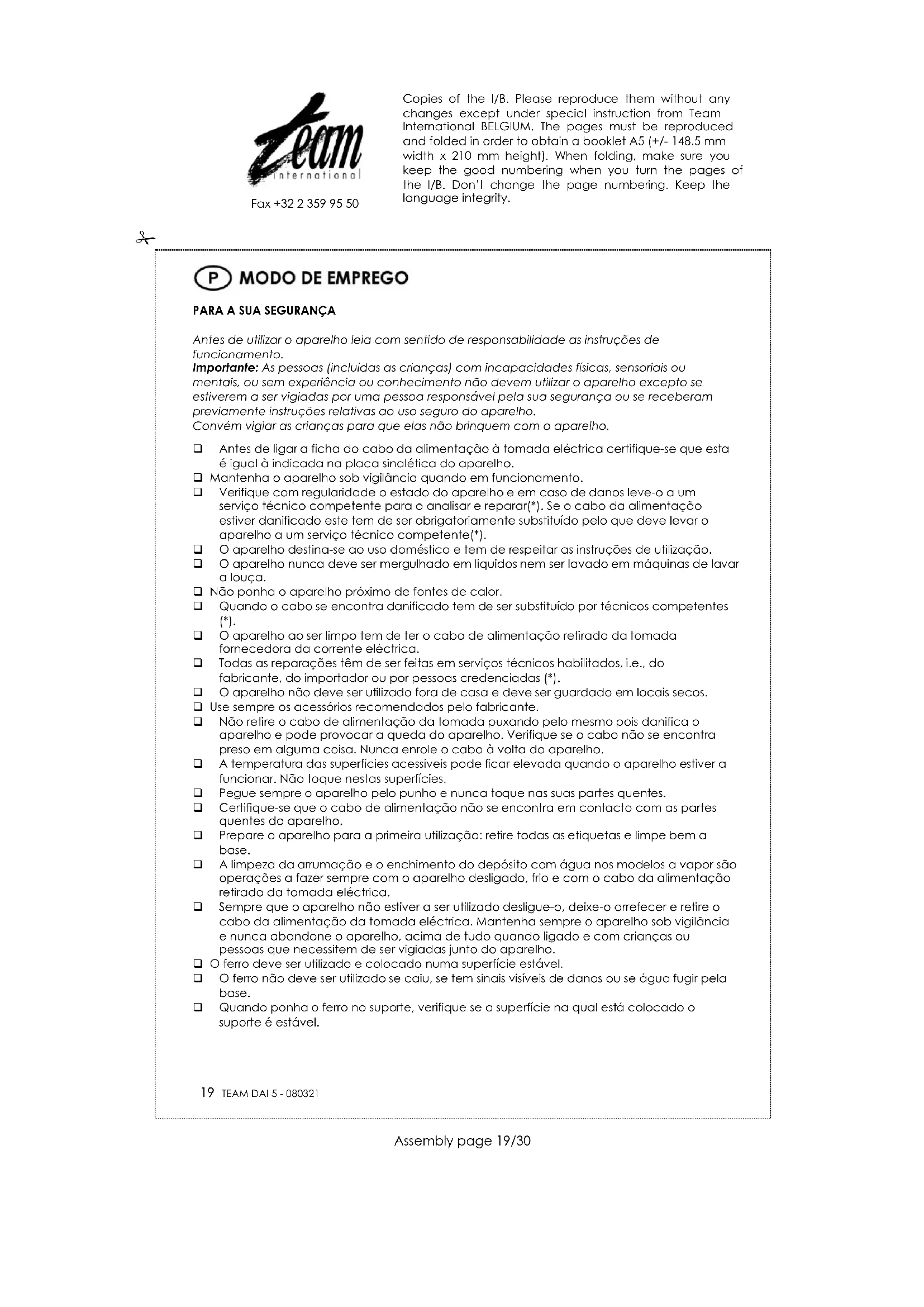 DAI 5 - Ferro de passar TEAM - Manual de utilização gratuito