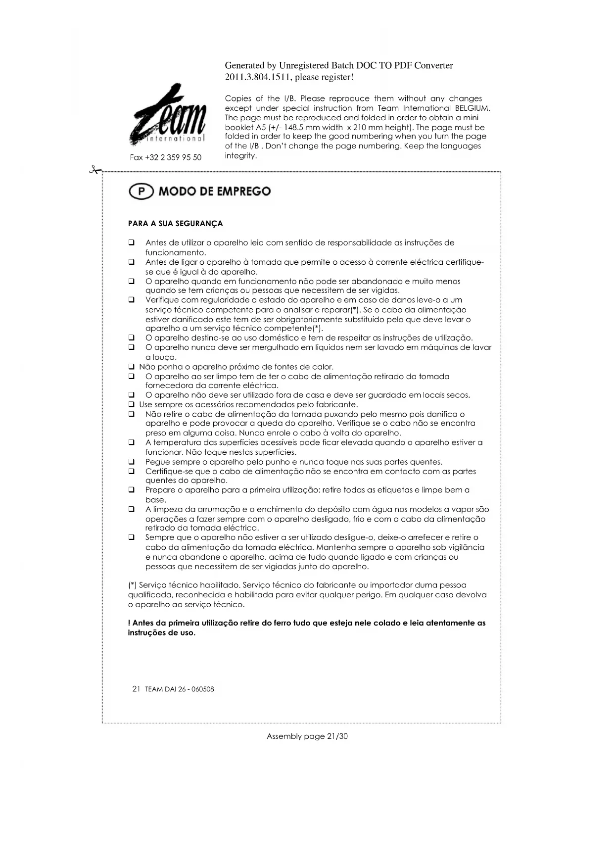 DAI 26 - Ferro de passar TEAM - Manual de utilização gratuito