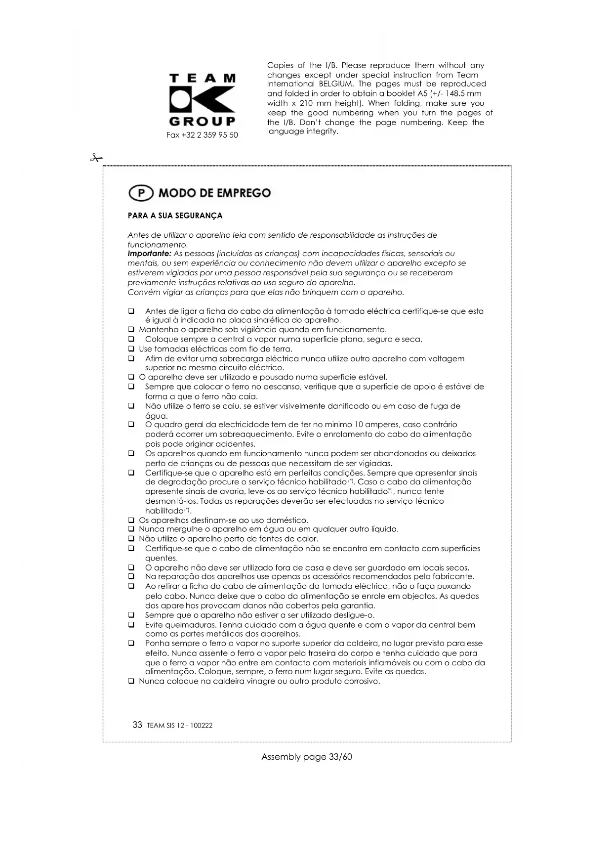 SIS 12 - Ferro de passar TEAM - Manual de utilização gratuito