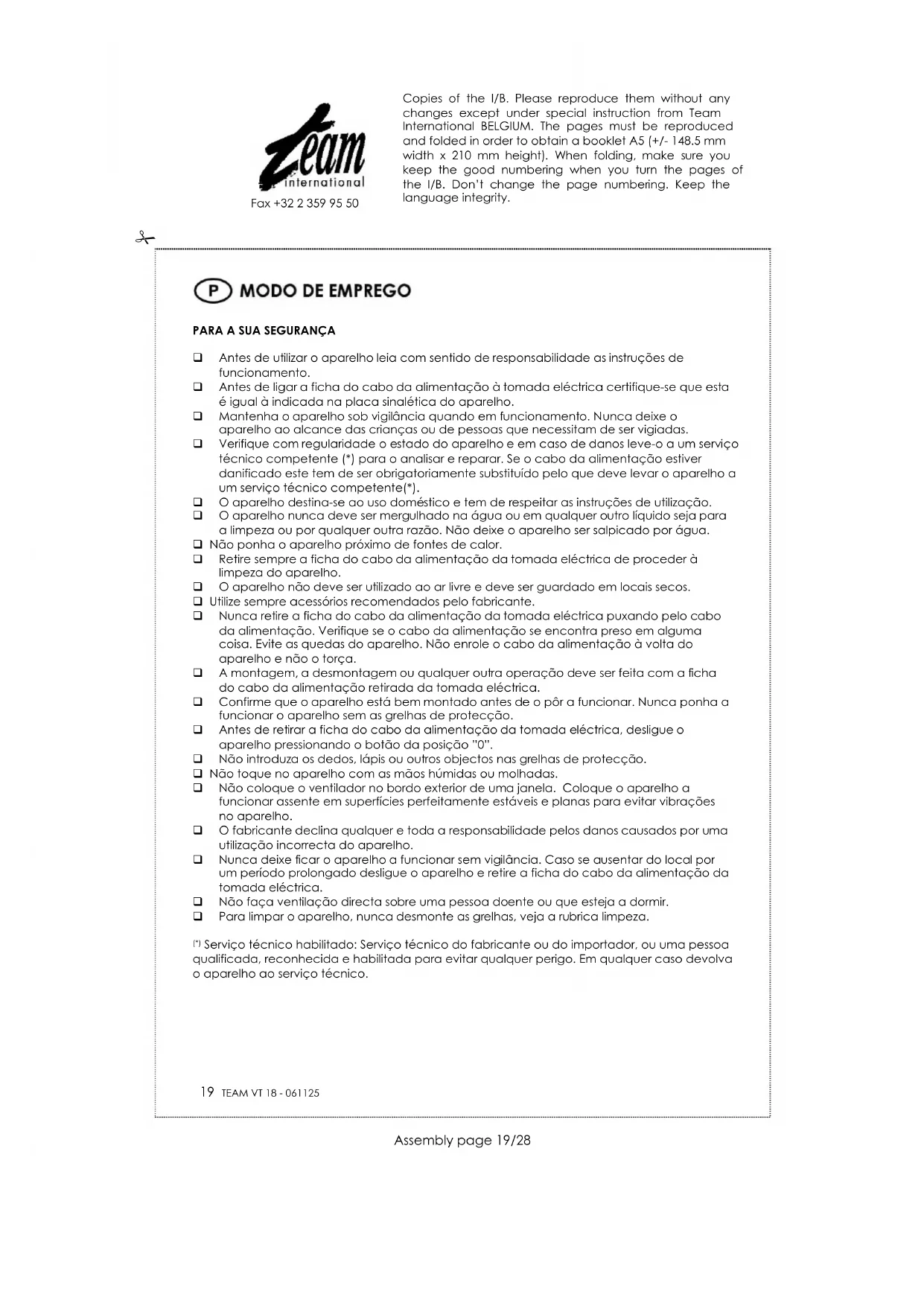VT 18 - Ventilador TEAM - Manual de utilização gratuito