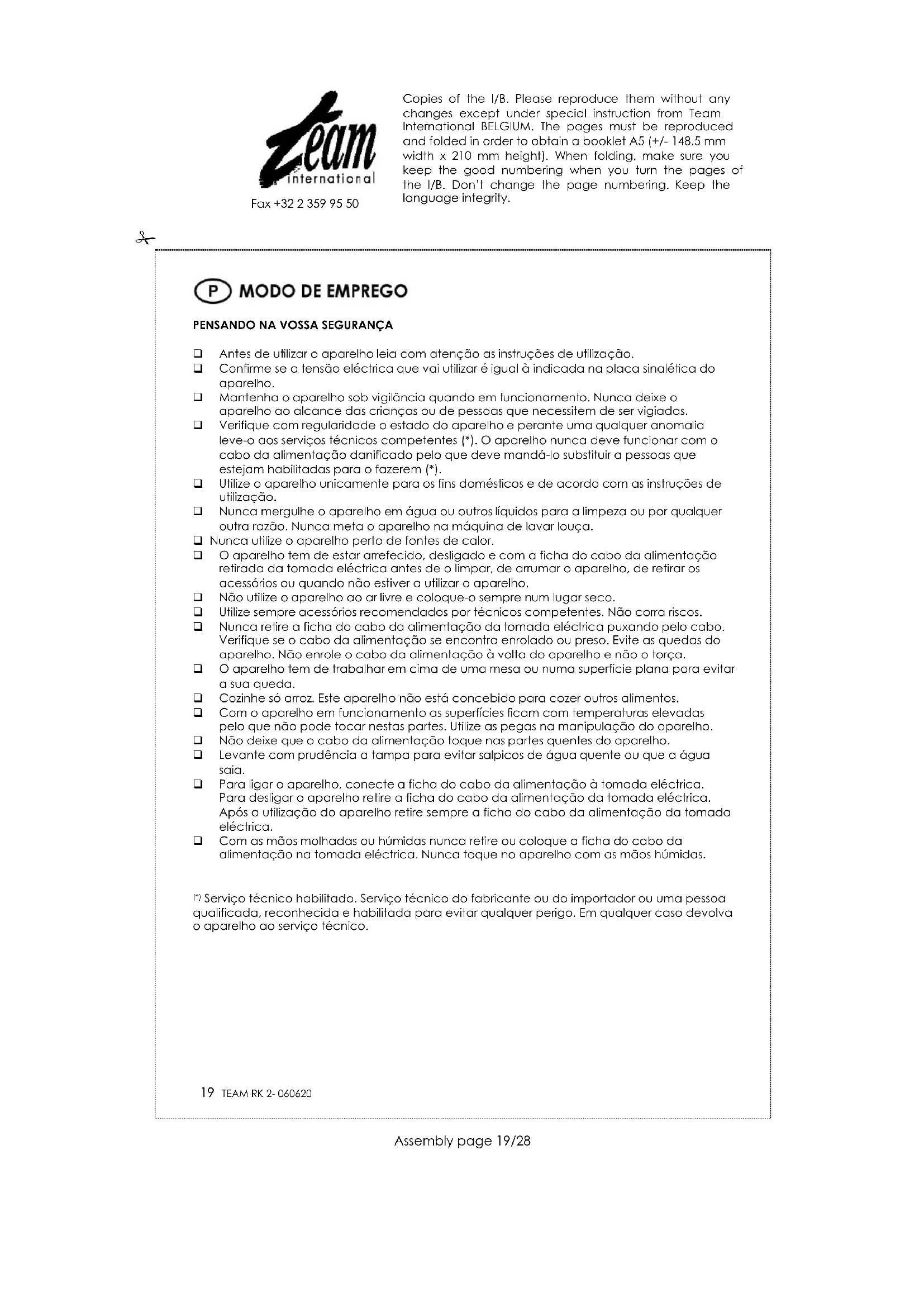 RK 2 - Panela de arroz TEAM - Manual de utilização gratuito