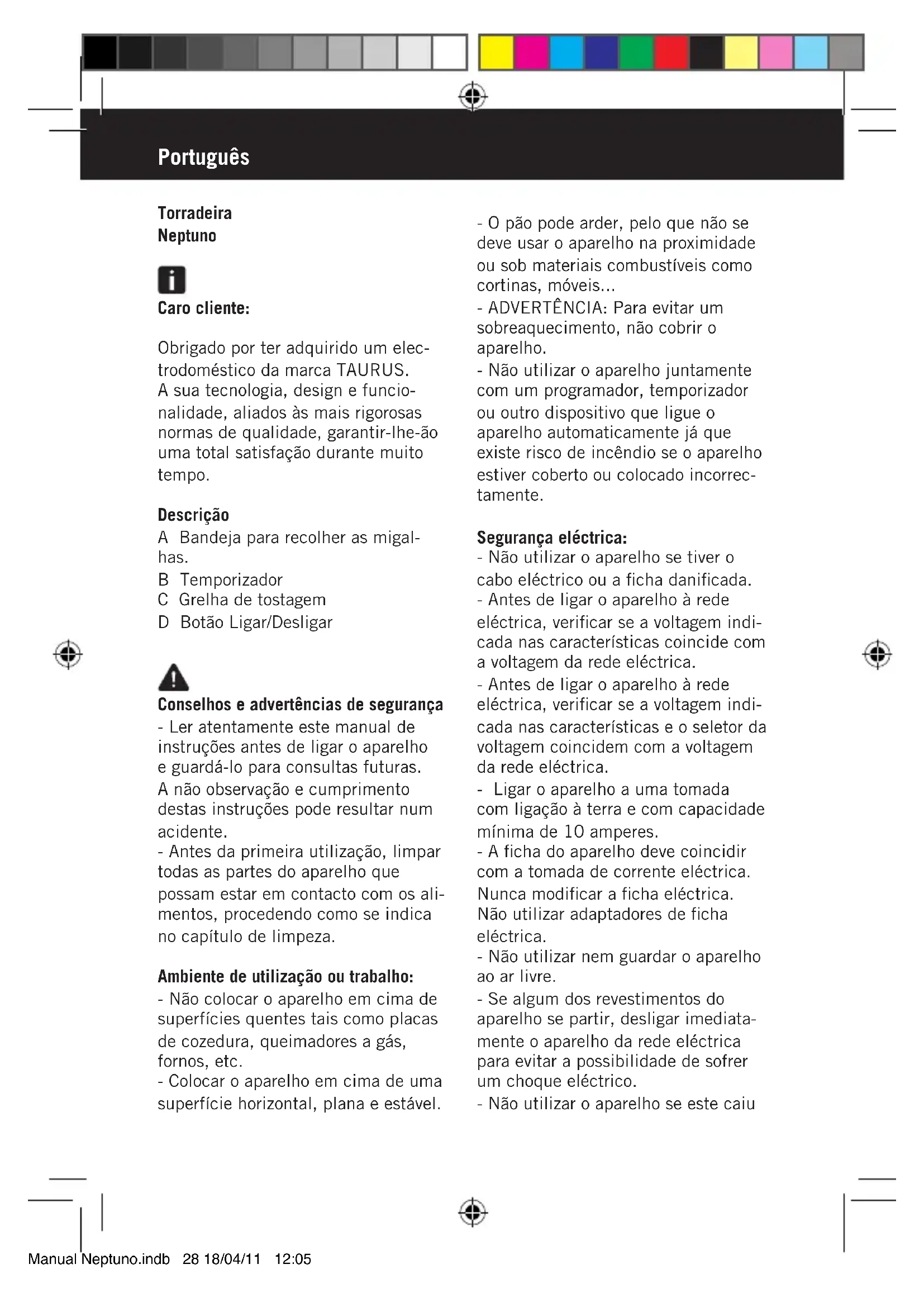 Encontre gratuitamente o manual do aparelho Neptuno TAURUS em formato PDF.