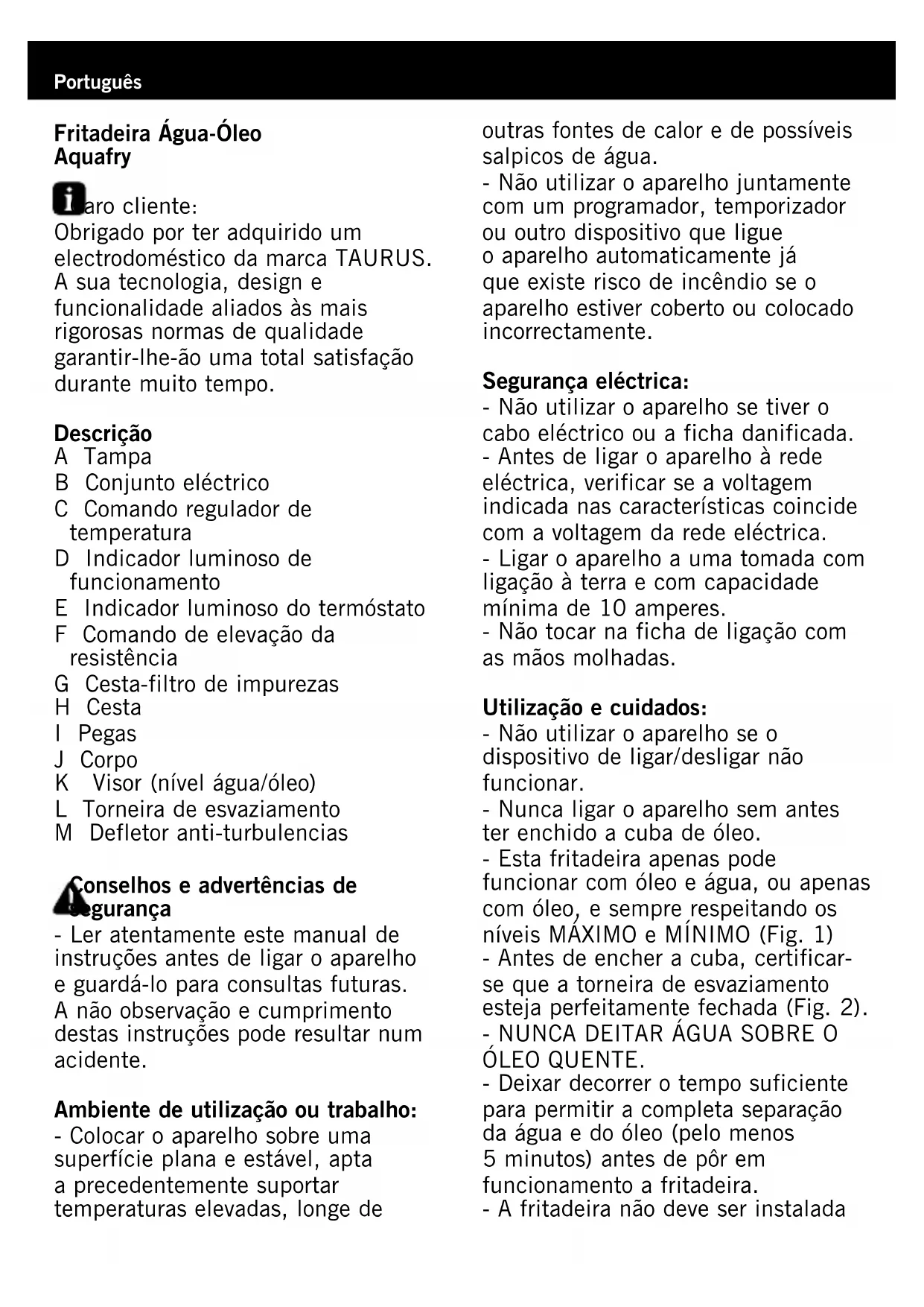 MANUAL DE UTILIZADOR Aquafry TAURUS