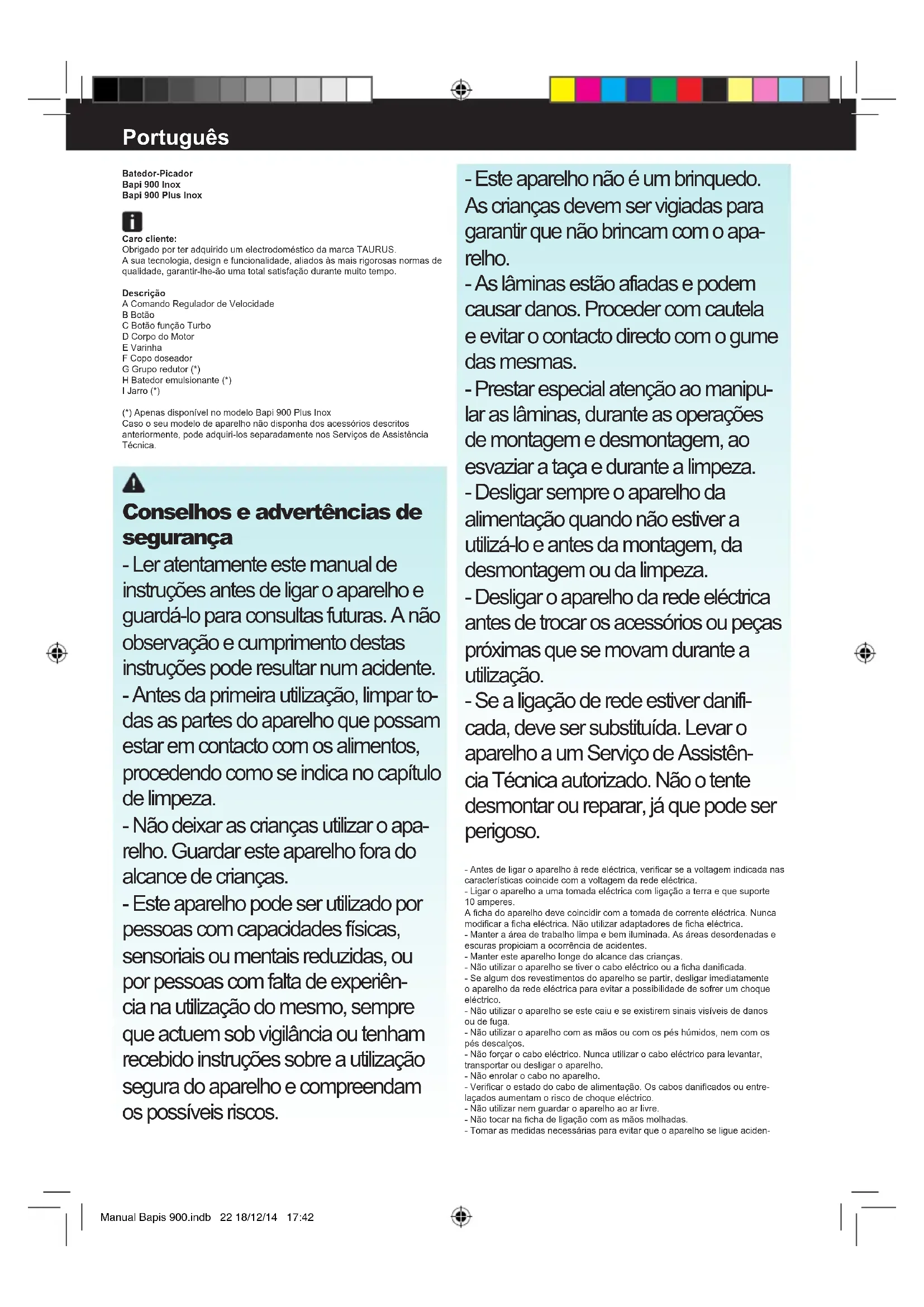 MANUAL DE UTILIZADOR Bapi 900 Inox TAURUS