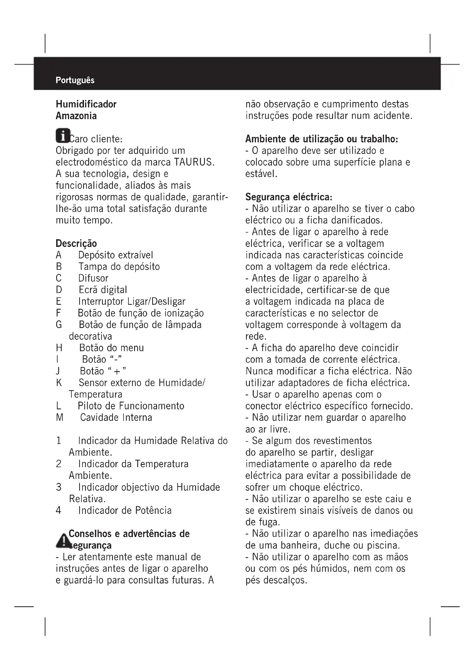 Amazonia - Humidificador TAURUS - Manual de utilização gratuito
