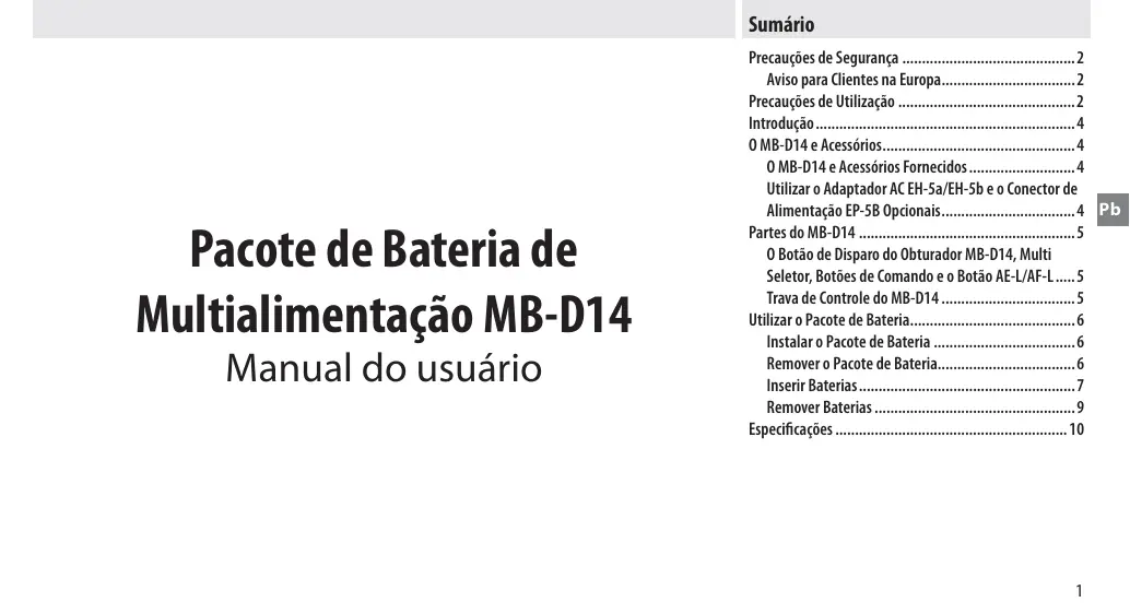 MANUAL DE UTILIZADOR MB-D14 NIKON