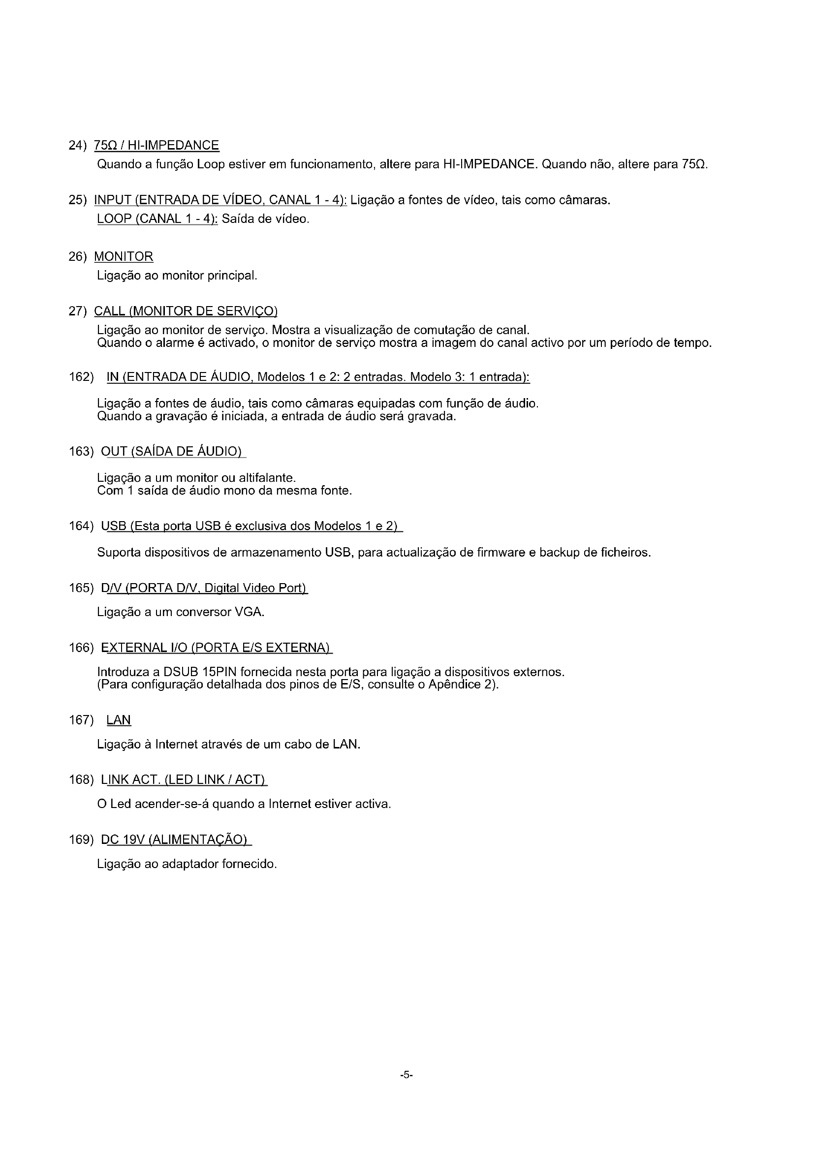 25) INPUT (ENTRADA DE VÍDEO, CANAL 1 - 4): Ligação a fontes de vídeo, tais como câmaras.