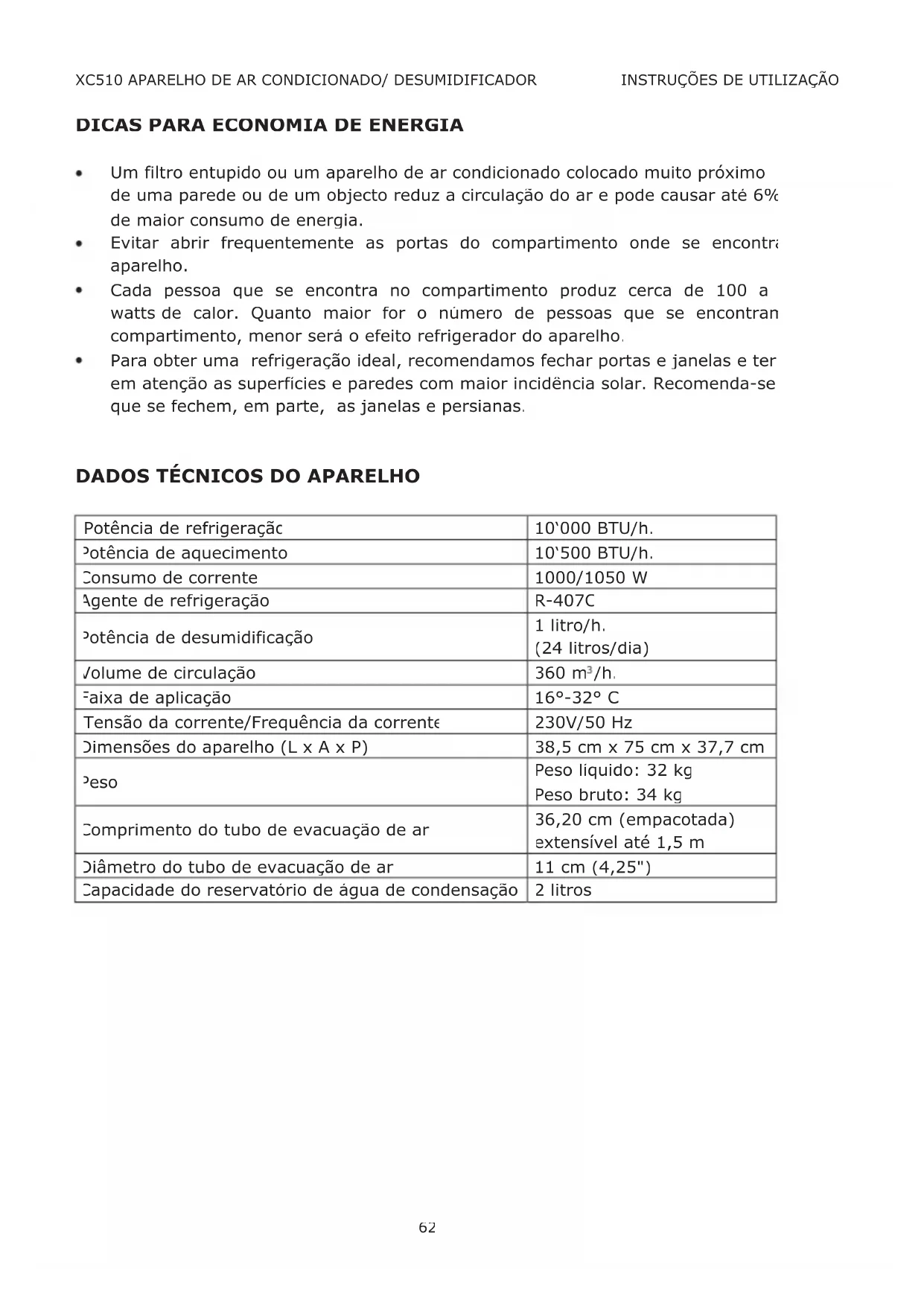 XC510 APARELHO DE AR CONDICIONADO/ DESUMIDIFICADOR