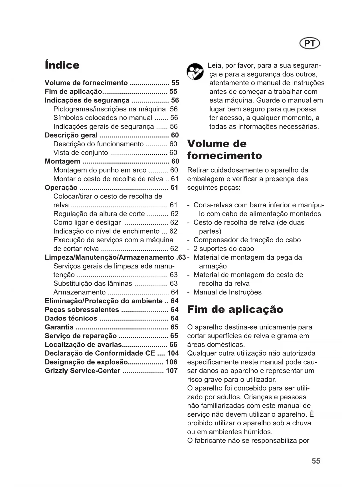 ERM 1742 G - Corta-relva Grizzly - Manual de utilização gratuito