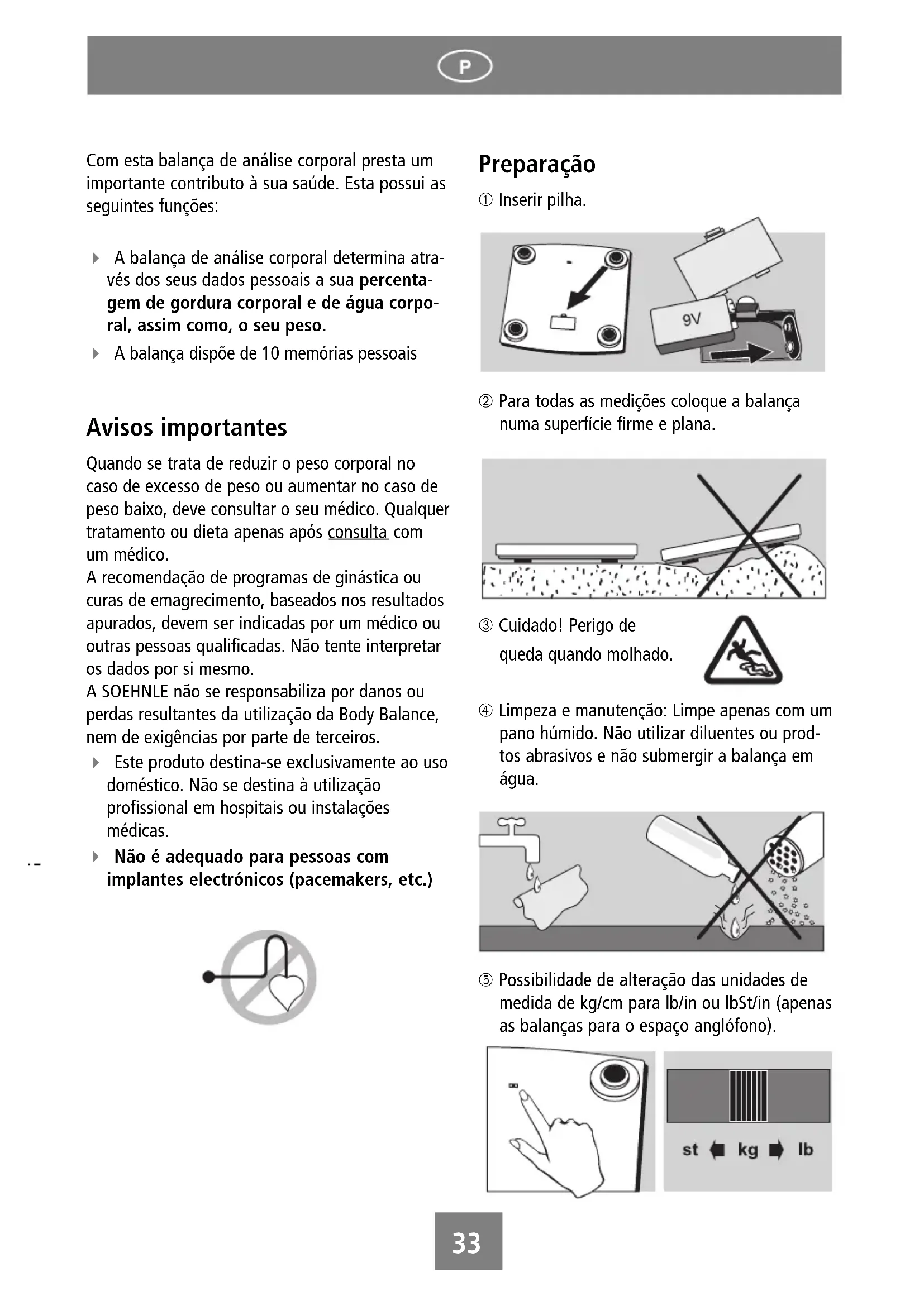 A SOEHNLE não se responsabiliza por danos ou perdas resultantes da utilização da Body Balance, nem de exigências por parte de terreiros.