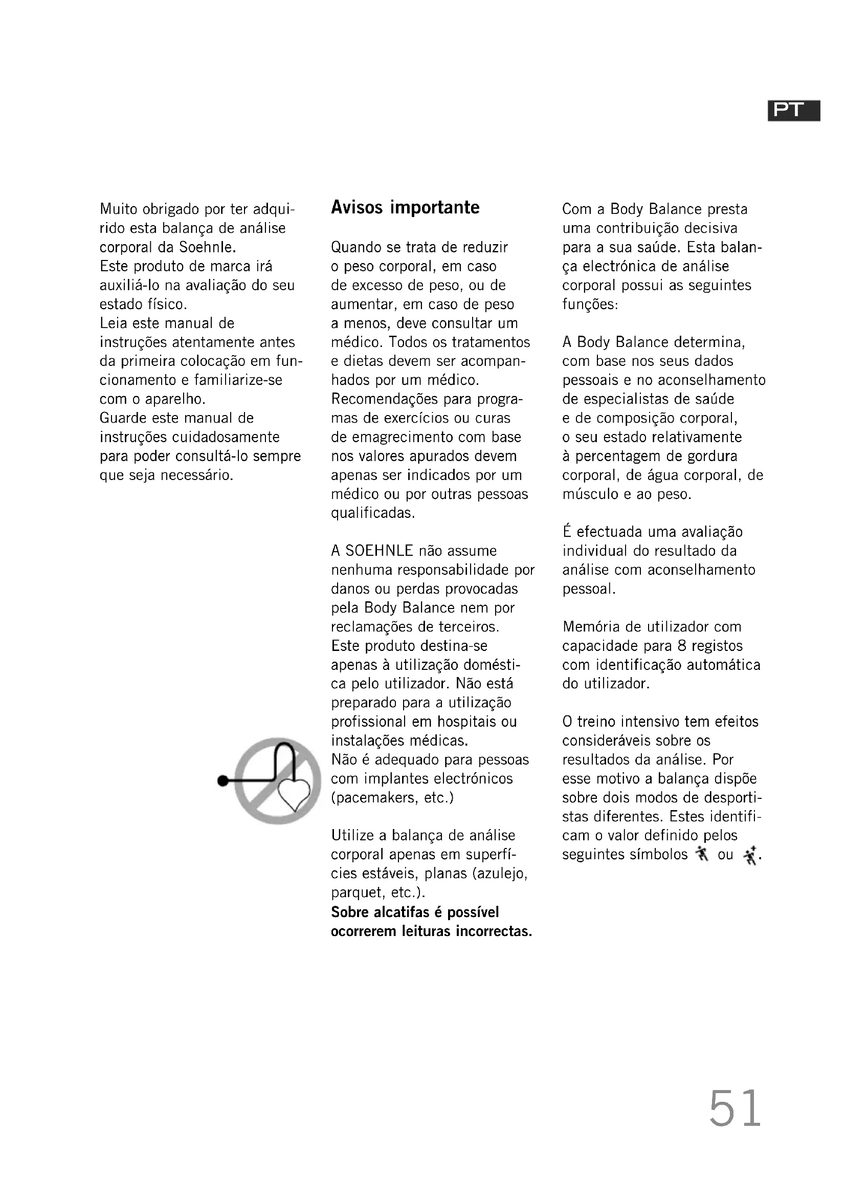 A SOEHNLE não assume nenhuma responsabilité por danos ou perdas provocadas pela Body Balance nem por reclamações de terreiros.