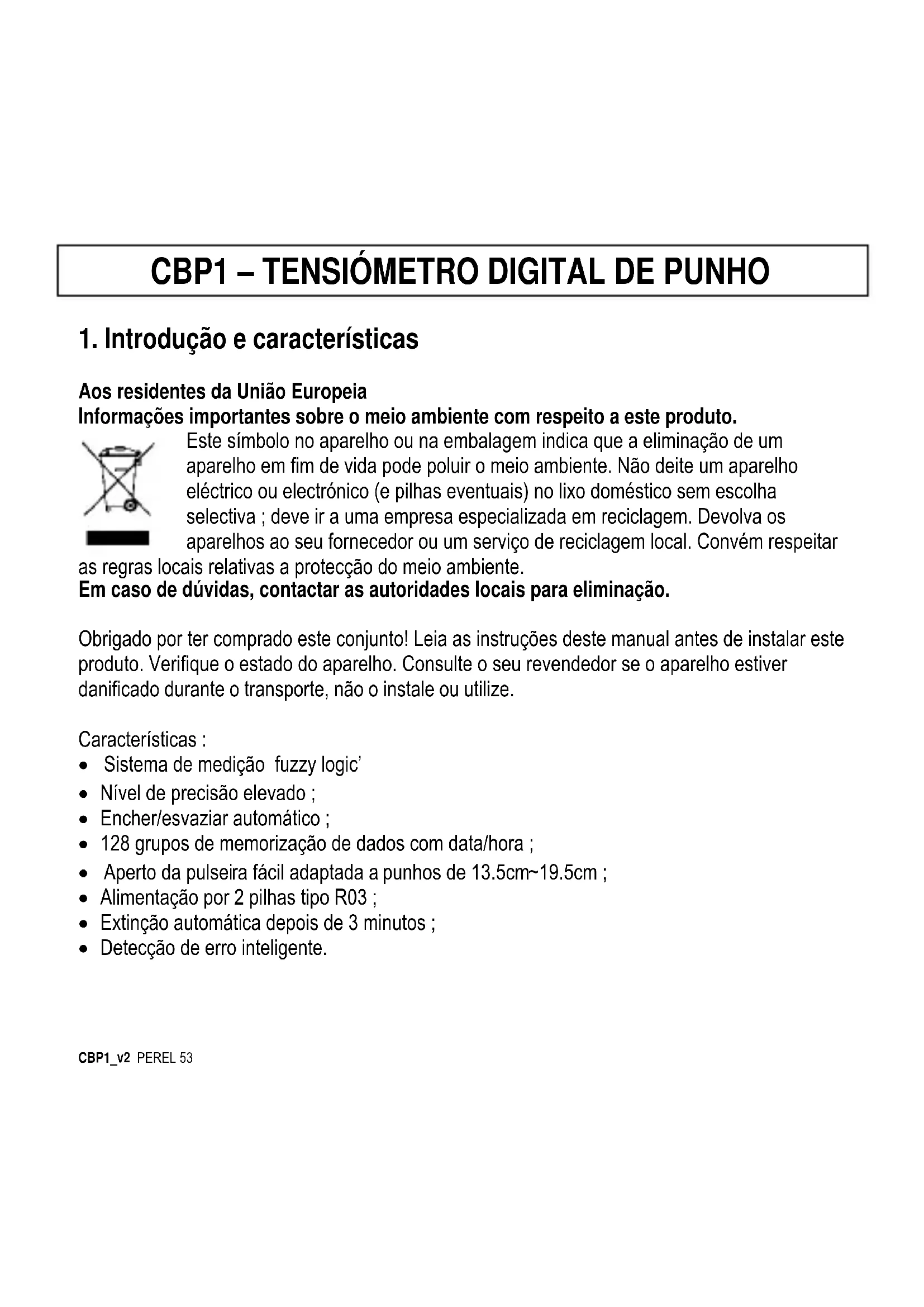 MANUAL DE UTILIZADOR CBP1 Perel