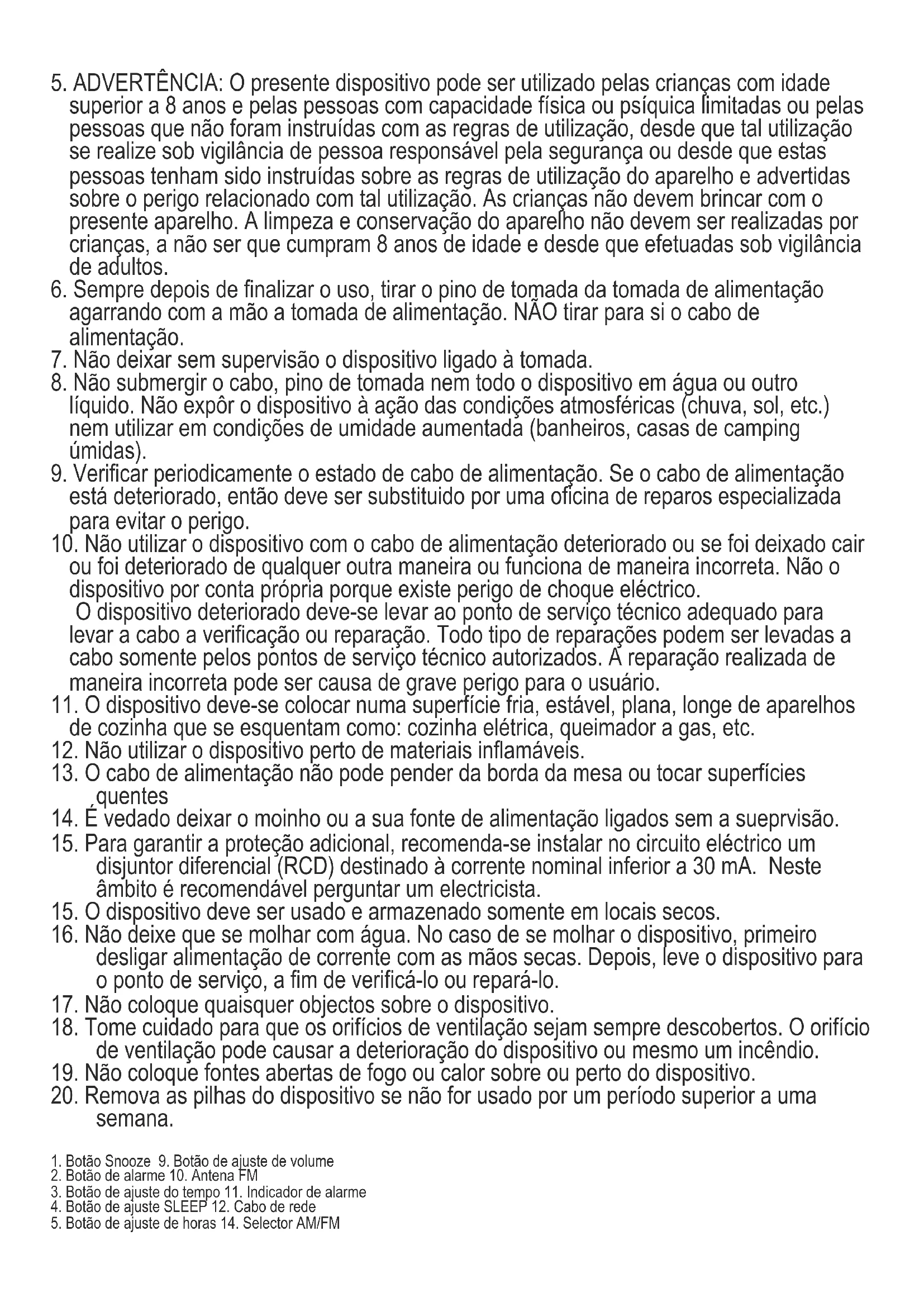 1. Botão Snooze 9. Botão de ajuste de volume